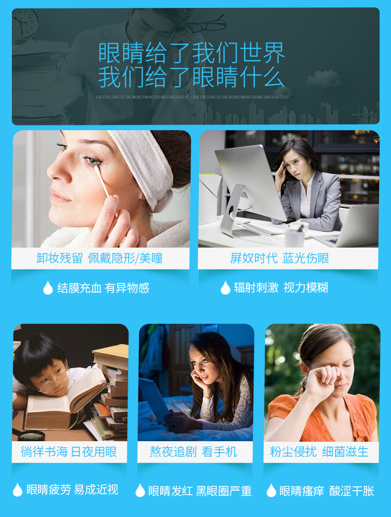 洗眼液温和不刺激,用起来很清凉。深层清洁眼睛里的脏东西,舒适清爽,玻尿酸保湿,给眼睛补充水分和营养,保护角膜,帮助改善眼干、酸、涩、胀等多种疲劳,保护视力,预防近视