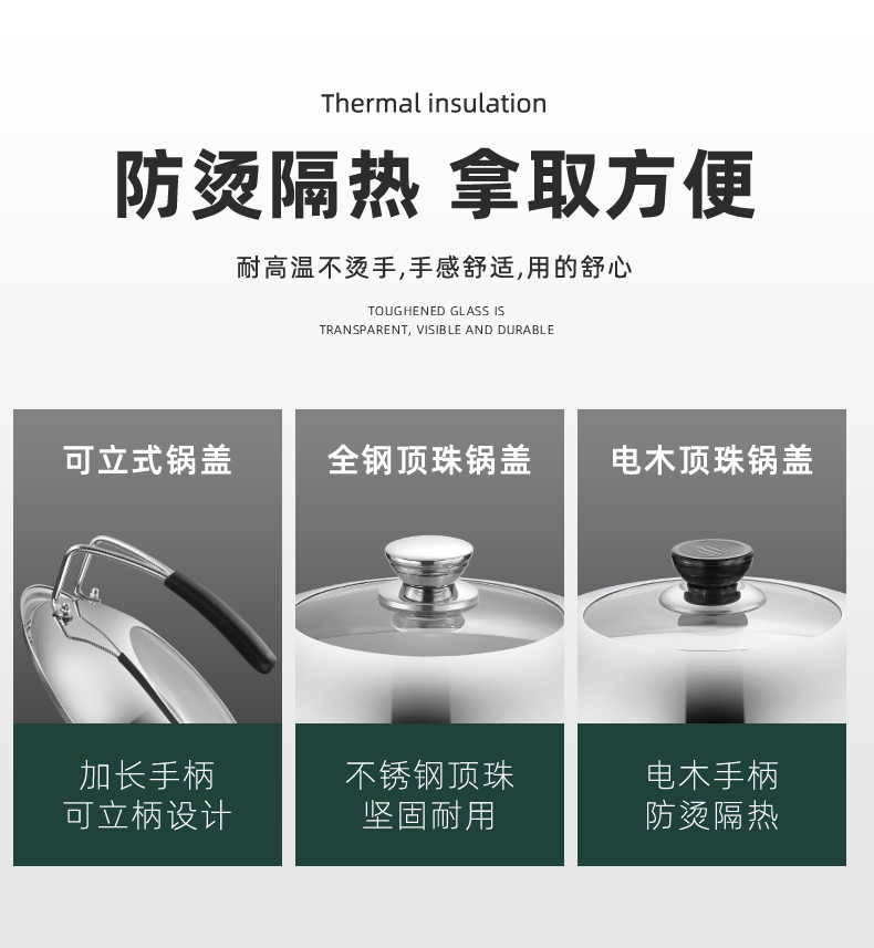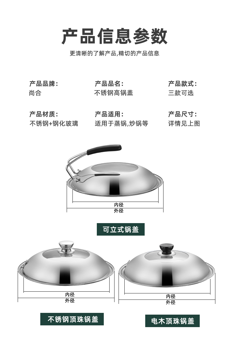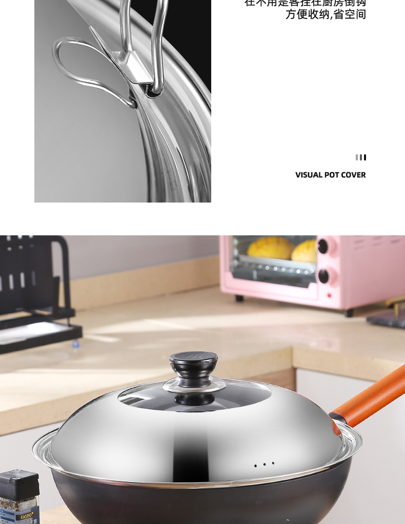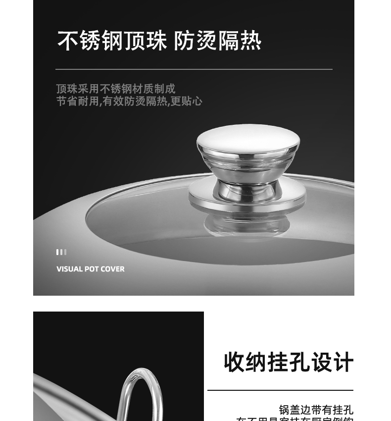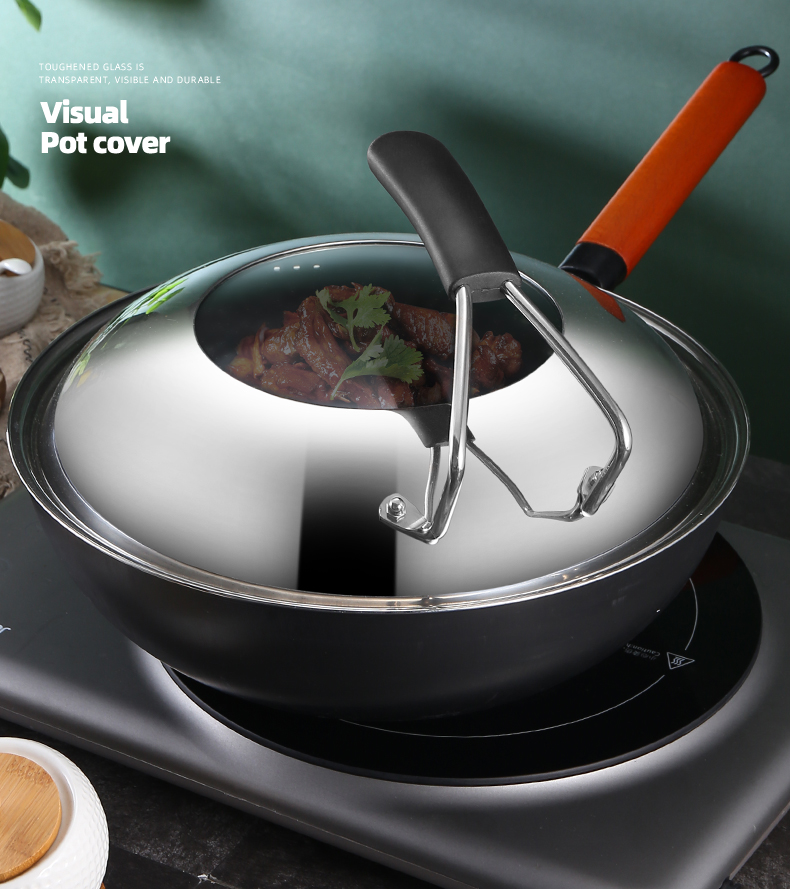 不锈钢钢化玻璃通用家用炒锅锅盖