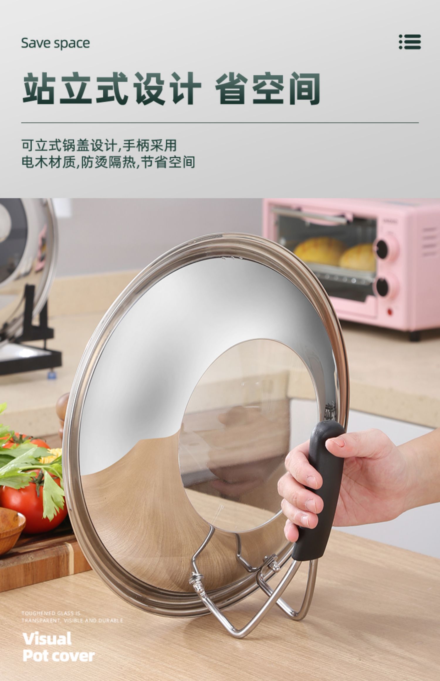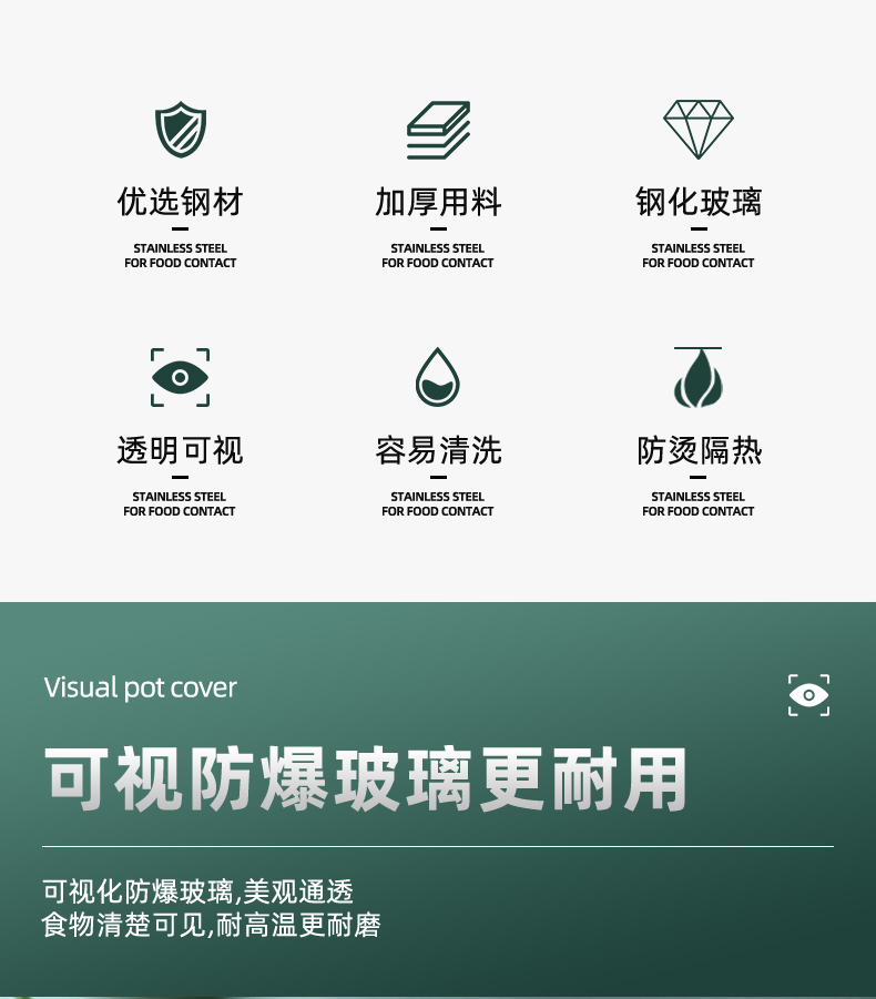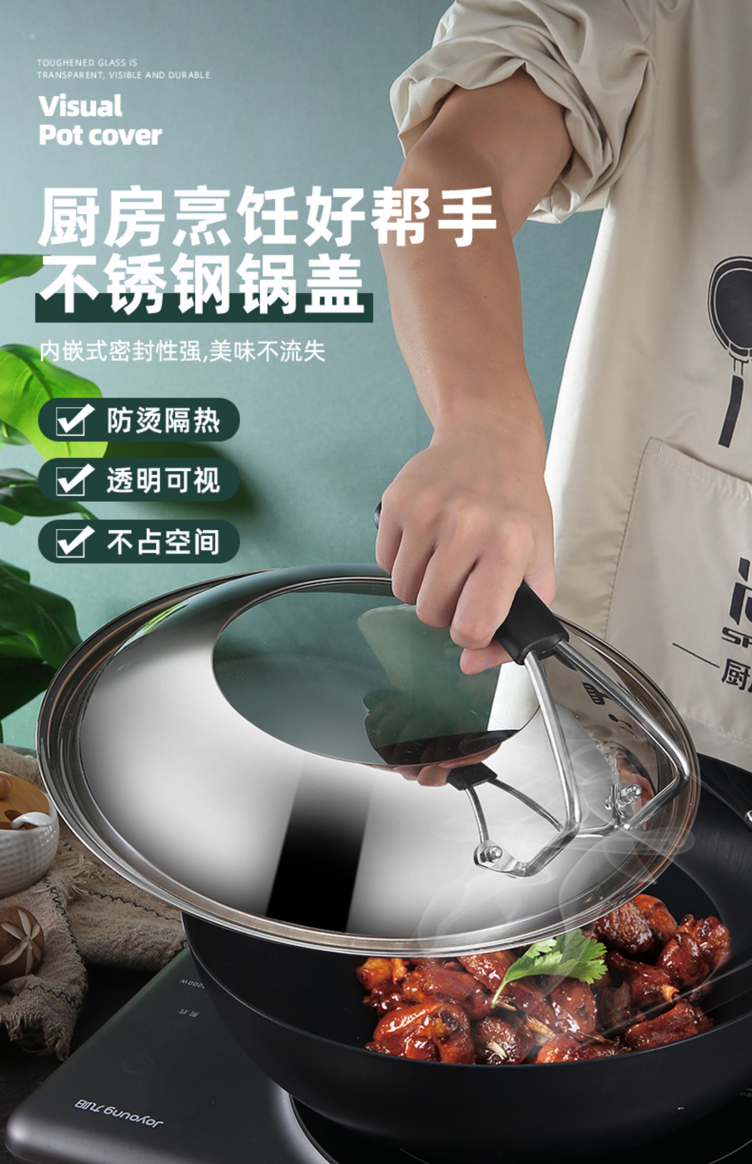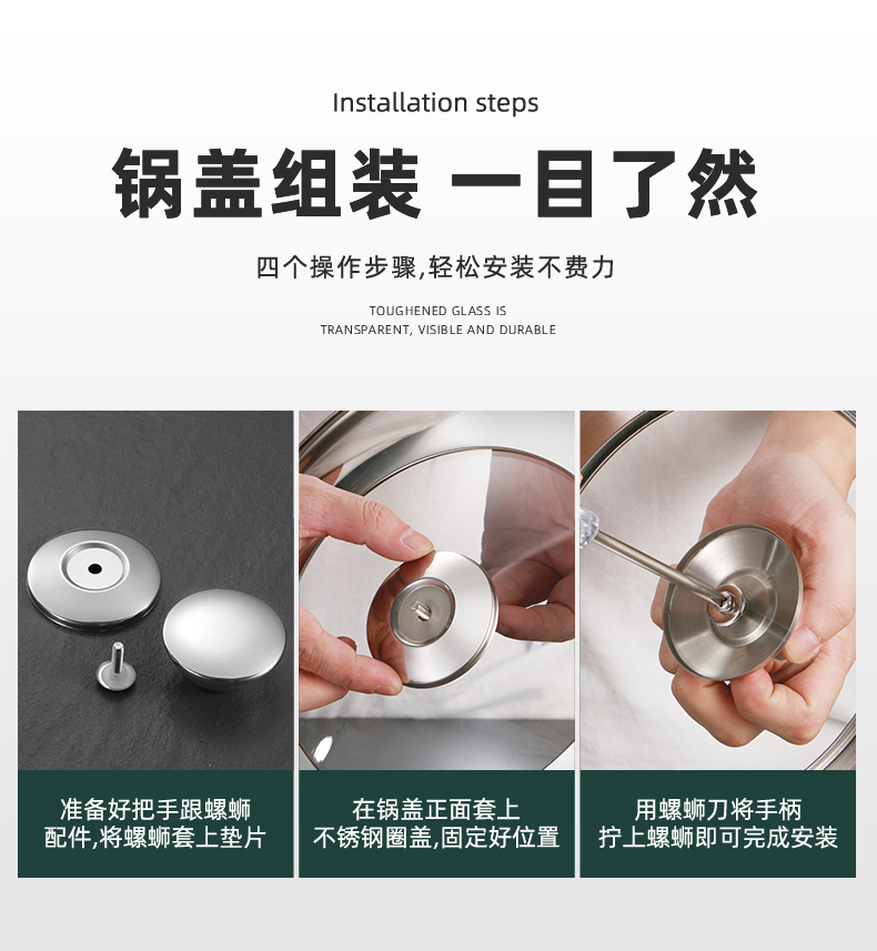 不锈钢钢化玻璃通用家用炒锅锅盖