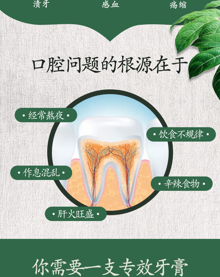 【拍两件更划算】去黄亮齿,减少口腔上火,缓解口腔问题,持久清新,加倍呵护,健康口腔,全家人的口腔专家,更多修护,保留幸福。