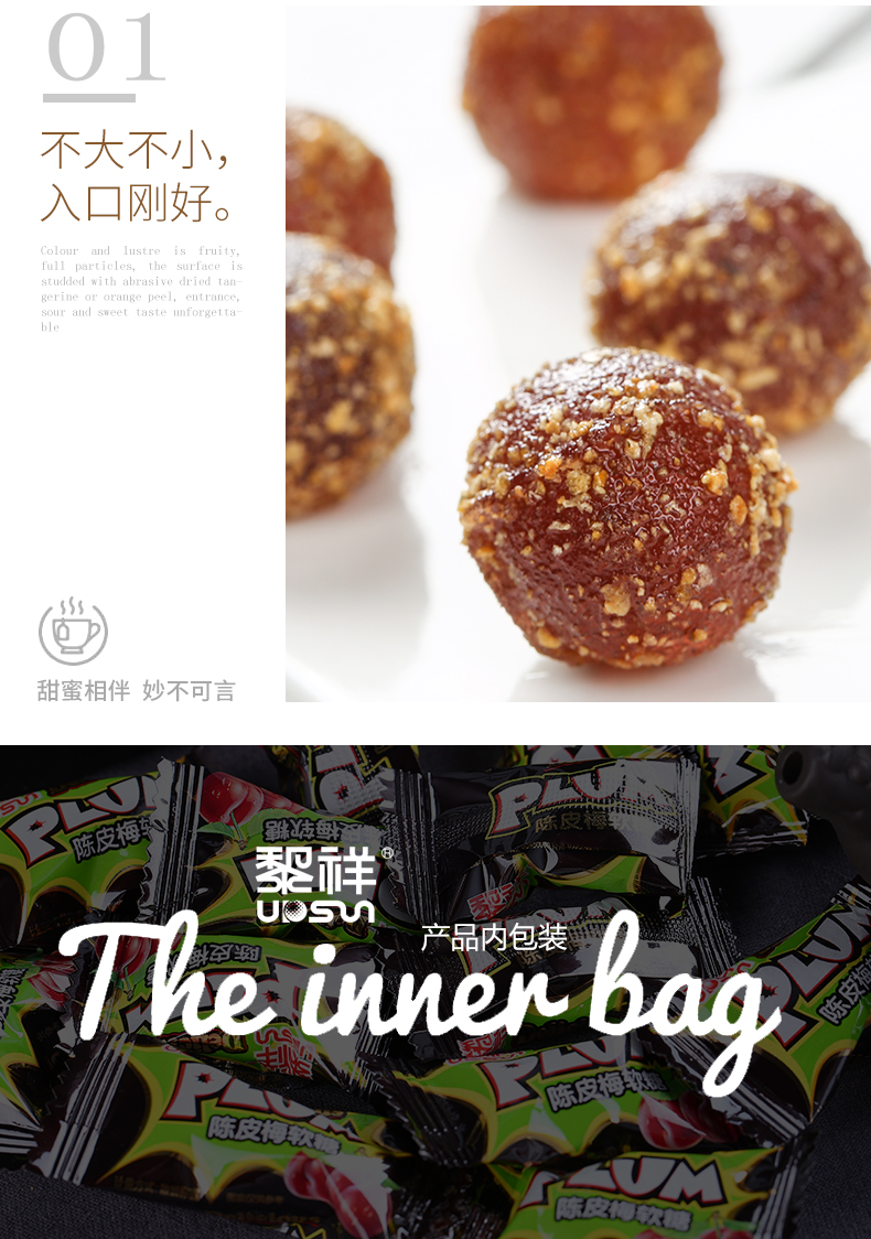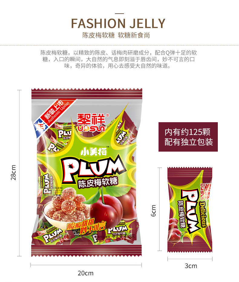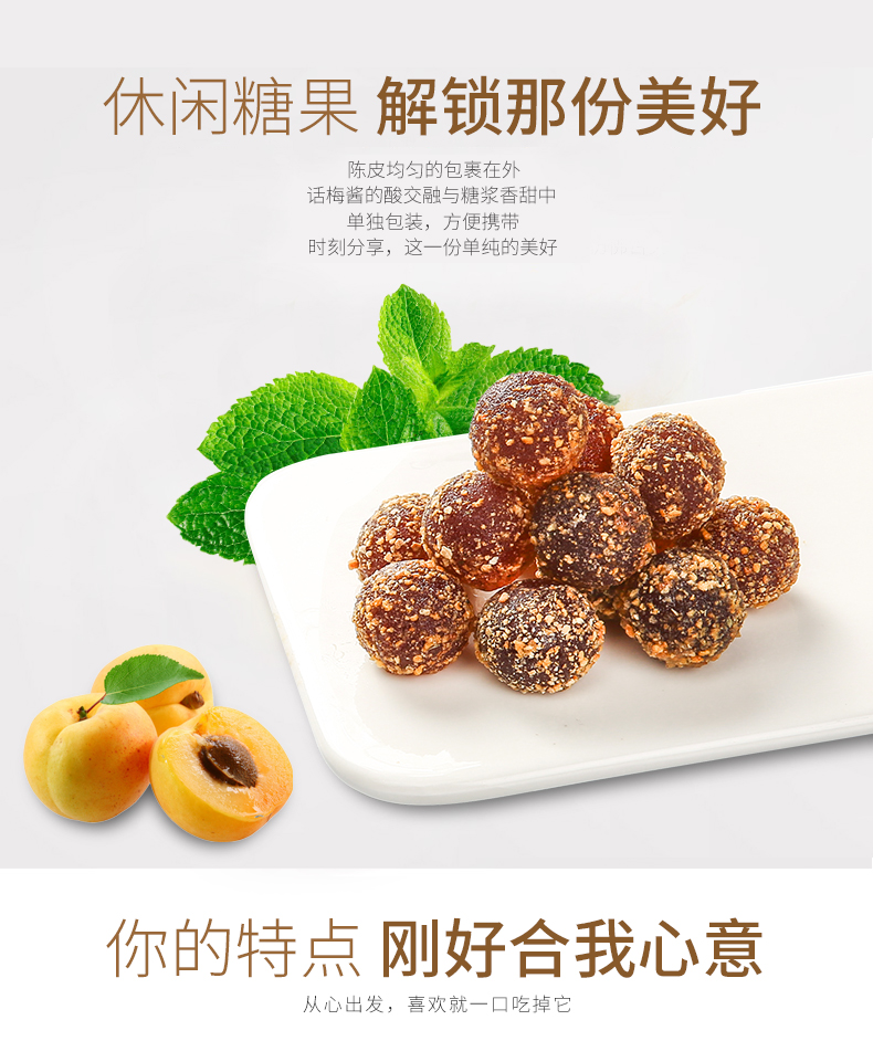 推荐休闲糖果,解锁那份美好,陈皮均匀的包裹在外,话梅酱的酸交融与糖浆香甜中,单独包装,方便携带,时刻分享~