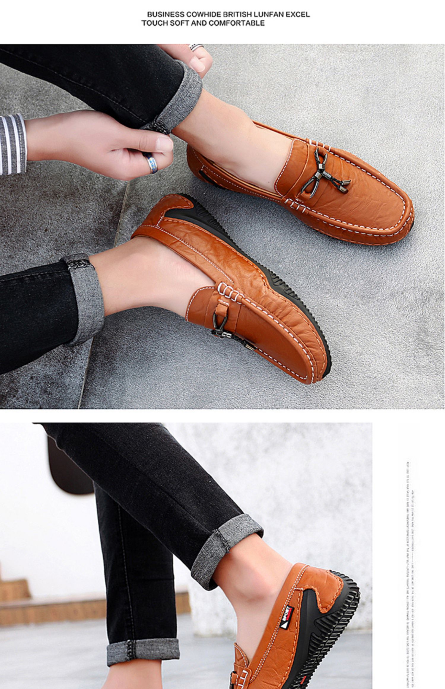 【真皮验货,专柜200元的品质】不是便宜货!精品男士休闲豆豆皮鞋,二层牛皮面料,超软鞋底,舒适透气,防滑耐磨、做工精细,精湛的设计工艺,手工缝制拒绝脱胶,商务休闲都可穿,时尚百搭。
