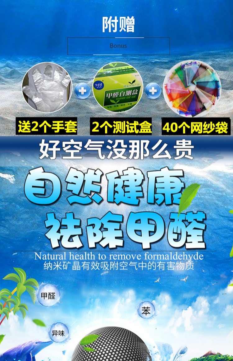 【赠送2个手套+2个测试盒+40个网纱袋】纳米晶矿,吸附孔径是炭类的100倍以上。无二次污染,孕婴可用,吸去潮气烟味,新房强力型除味剂,净化空气诚意优选!去除甲醛。【赠送订单险,七天无理由退换】