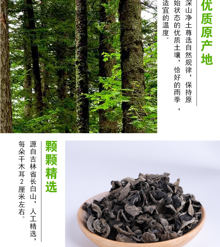【赠运险费】天猫店品质的保证,正宗东北特产黑木耳,人工摘选,整整500g装,肉厚无根,泡发率超高,无农药无添加纯天然晒干的黑木耳,好吃美味爽口,营养丰富!