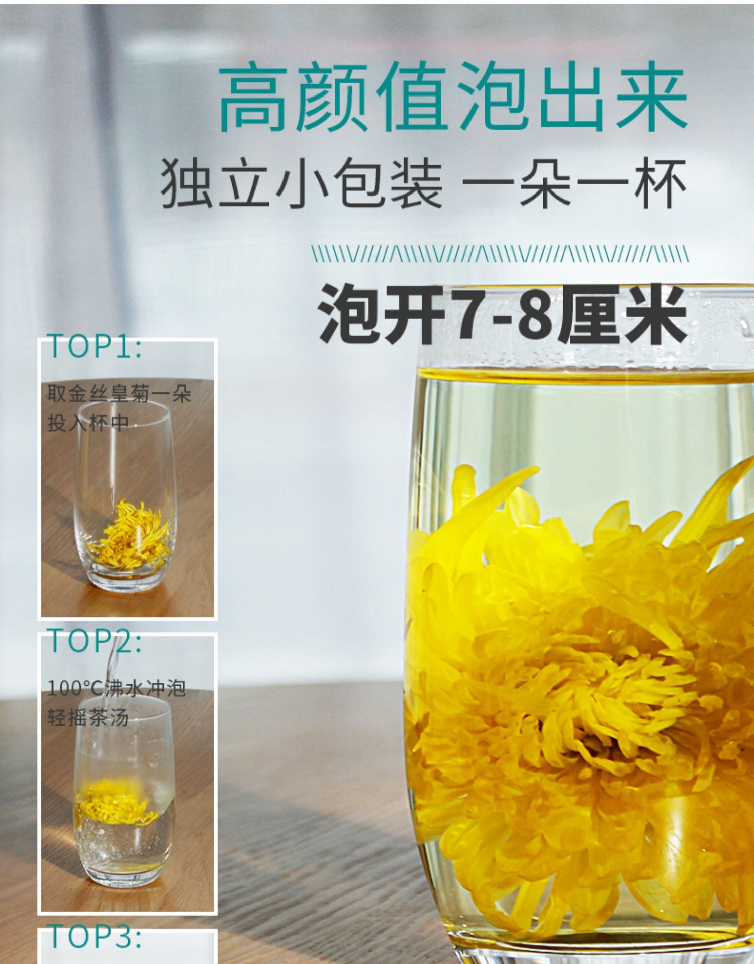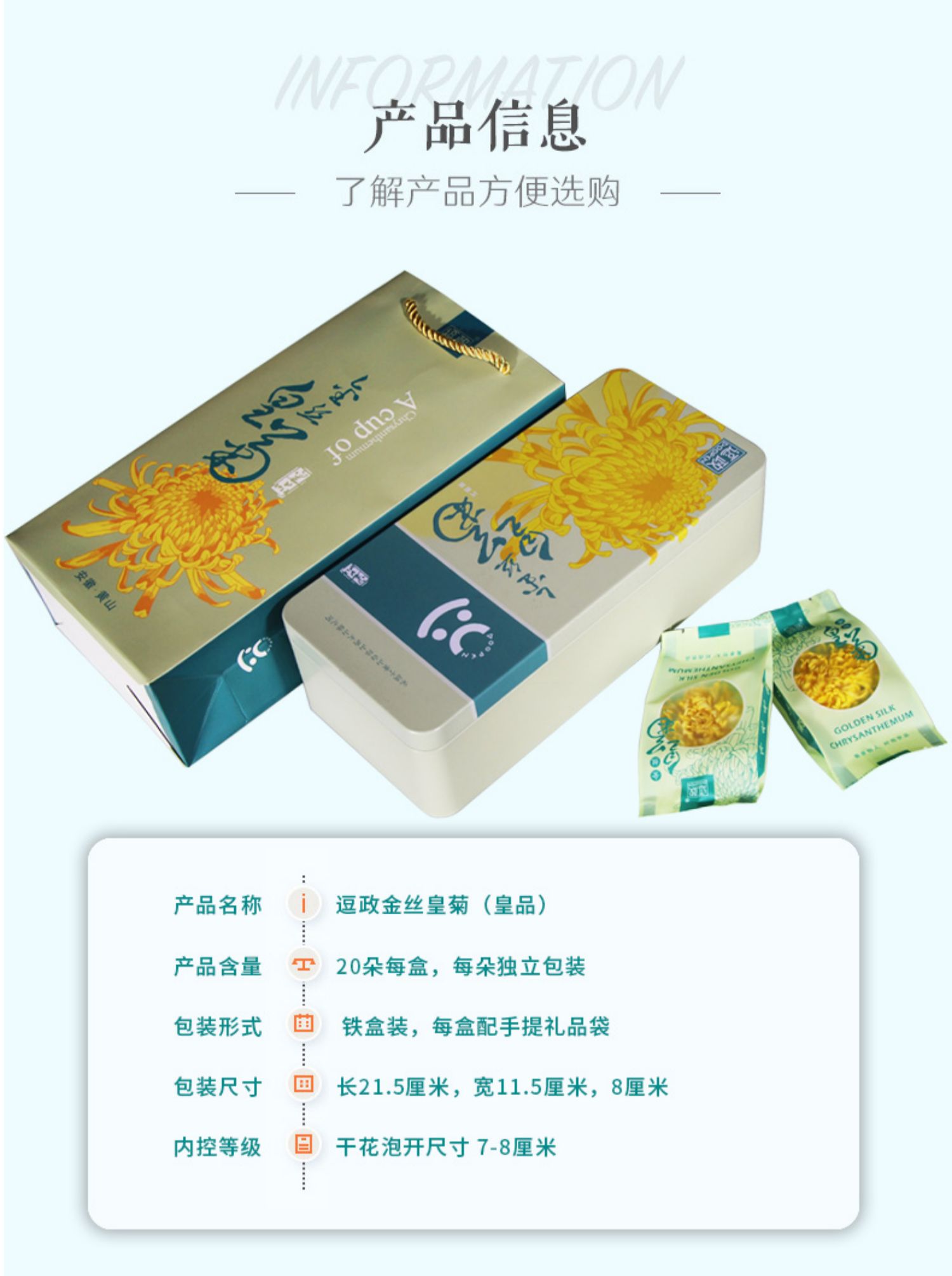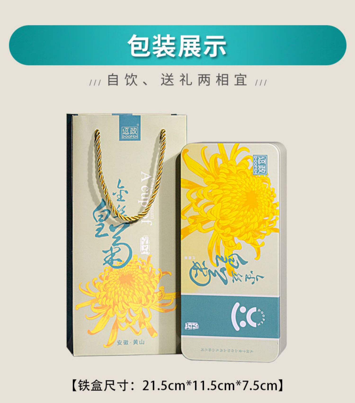 【精选大花,色泽诱人,清香甘甜】逗政皇菊贡菊,一朵一杯优质金丝皇菊,散风清热,清肝明目,解毒消炎,口味清淡,手工精选制作,喝出健康与美丽。