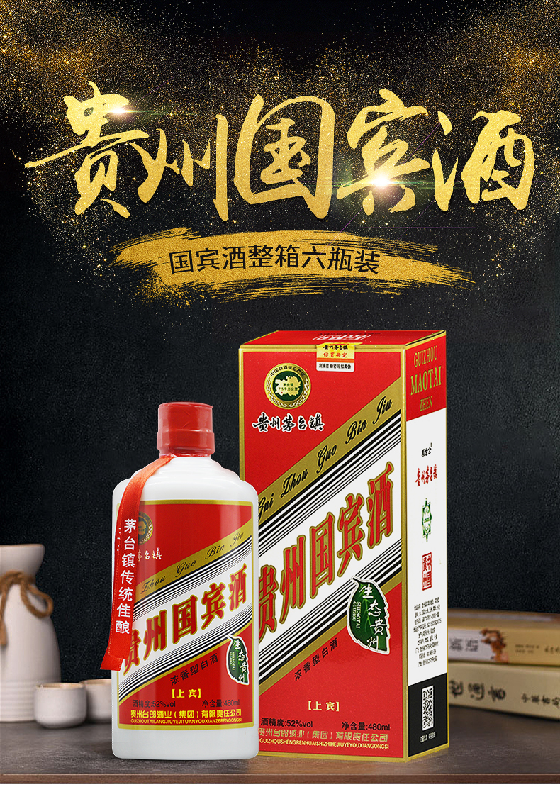 【6瓶整箱礼盒装还送手提袋,过年送礼更有面哦!】浓香型52高度贵州国宾酒,480ml*6瓶!原浆纯粮酿造,酒香尔醇,持久留香,好喝不上头,回味悠长,送礼佳品~【赠运费险】