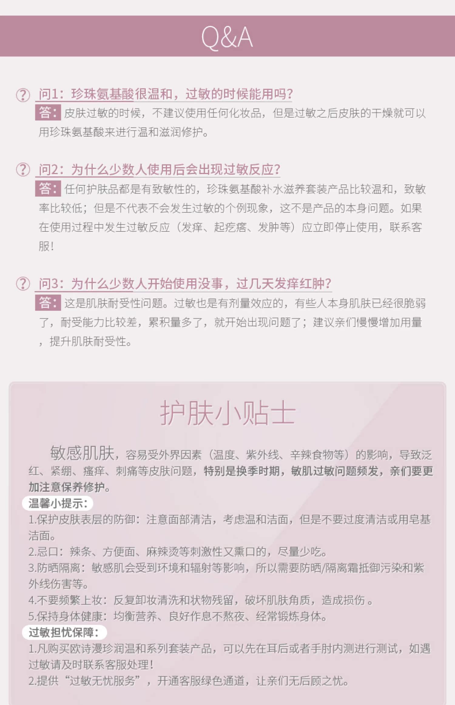 精选珍珠成分,蕴含多种珍珠氨基酸及甘氨酸甜菜碱,提升肌肤抵御力和弹性。备孕期、孕产期及哺乳期肌肤适用,天然安心,来自大自然的瑰宝~~~【赠运费险】