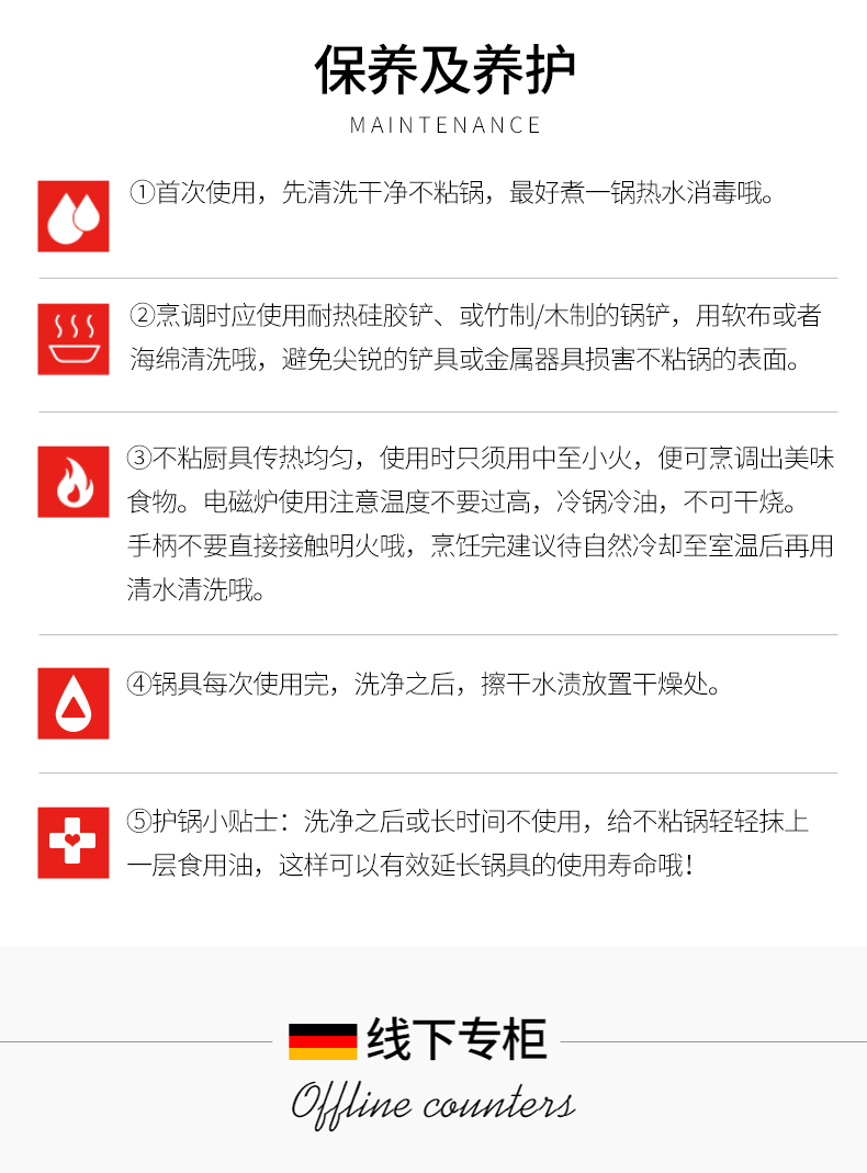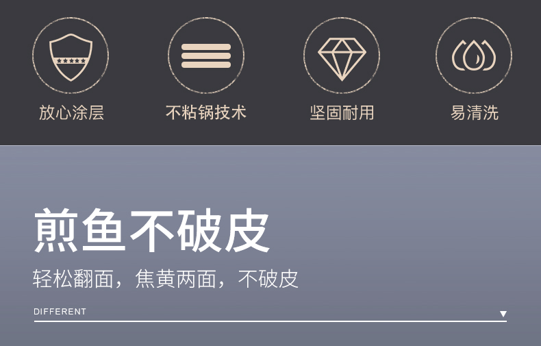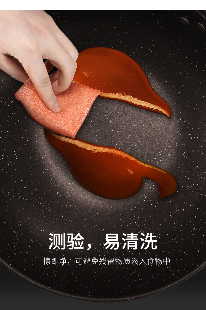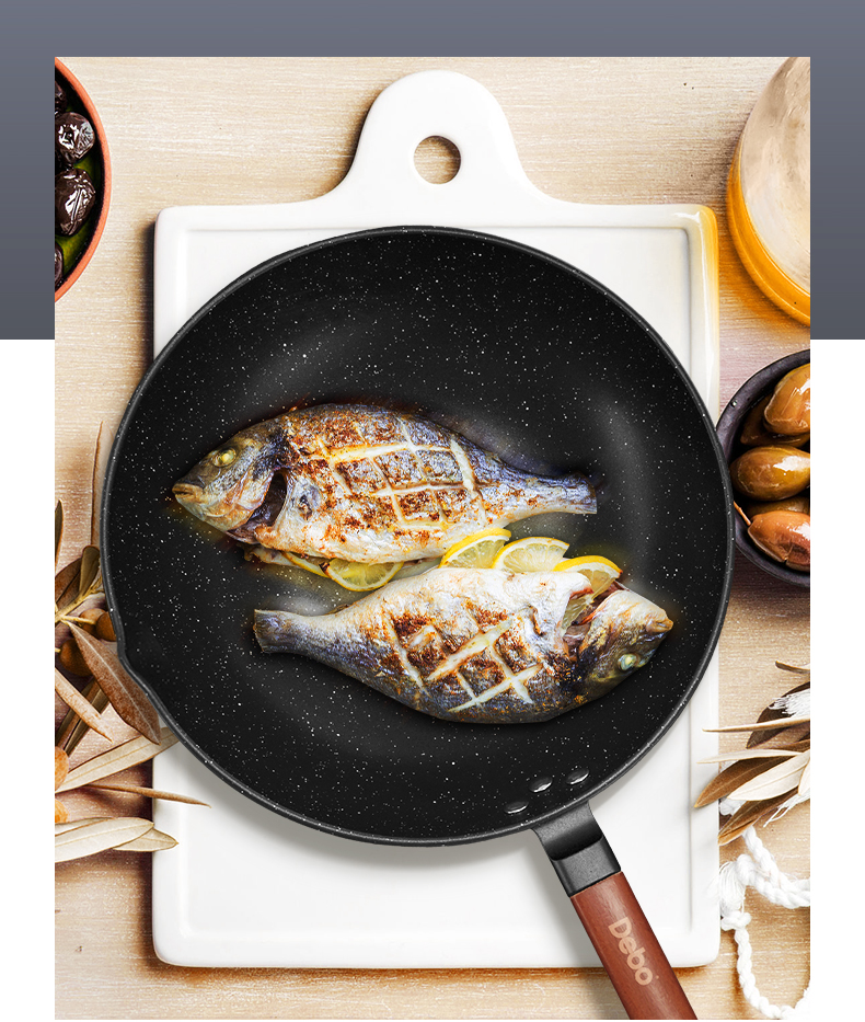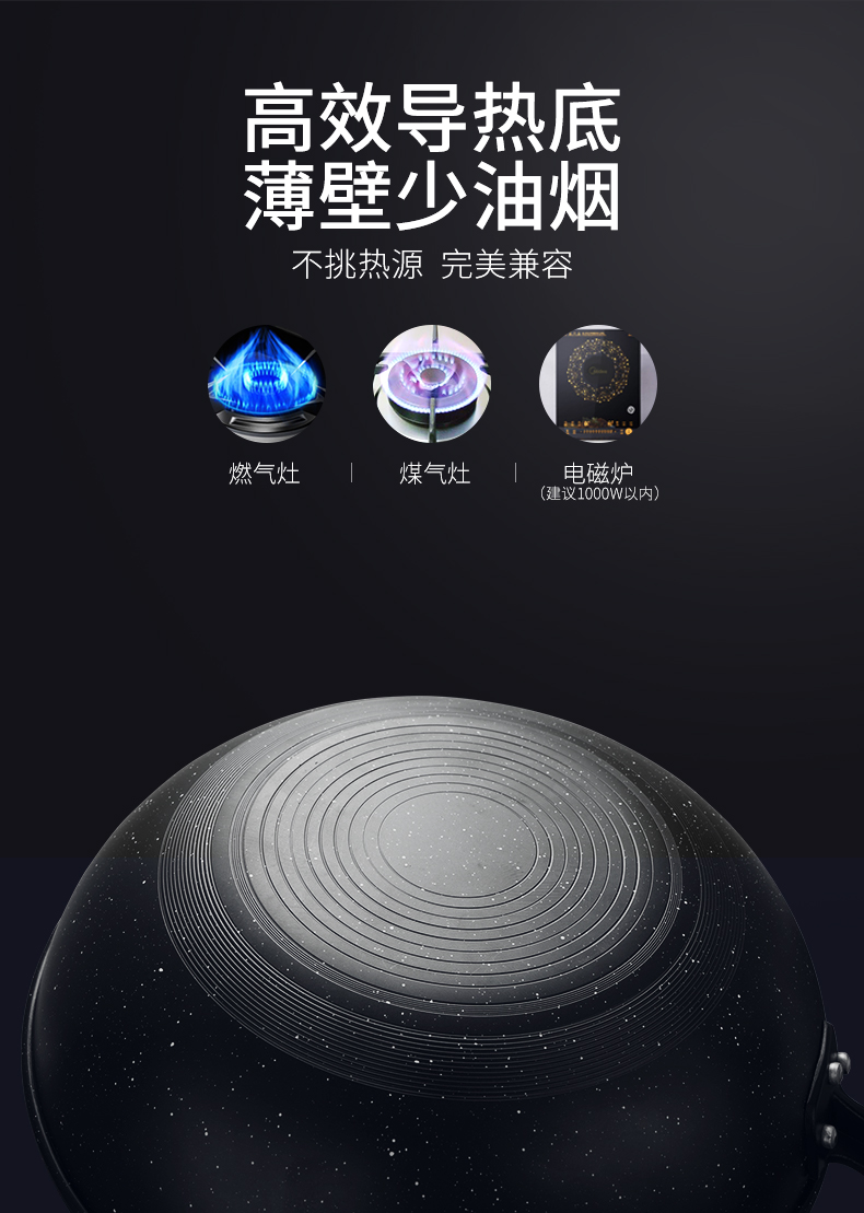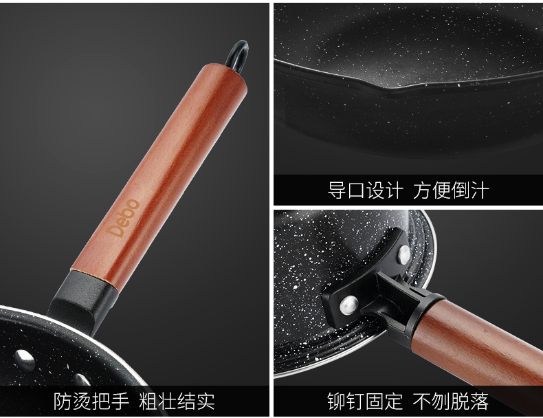 380°国内耐高温,均匀受热,烹饪更快,轻巧锅身,V型导流口,方便菜汁引渡,放心涂层,不粘锅技术,坚固耐用,易清洗,一擦即净。