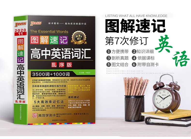 新图解速记高中英语词汇乱序版,3500词+1000词pass绿卡图书,高考英语词汇手册单词小本,高一高二高三英语复习资料教辅辅导口袋书,第7次修订,乱序版送超值赠品。
