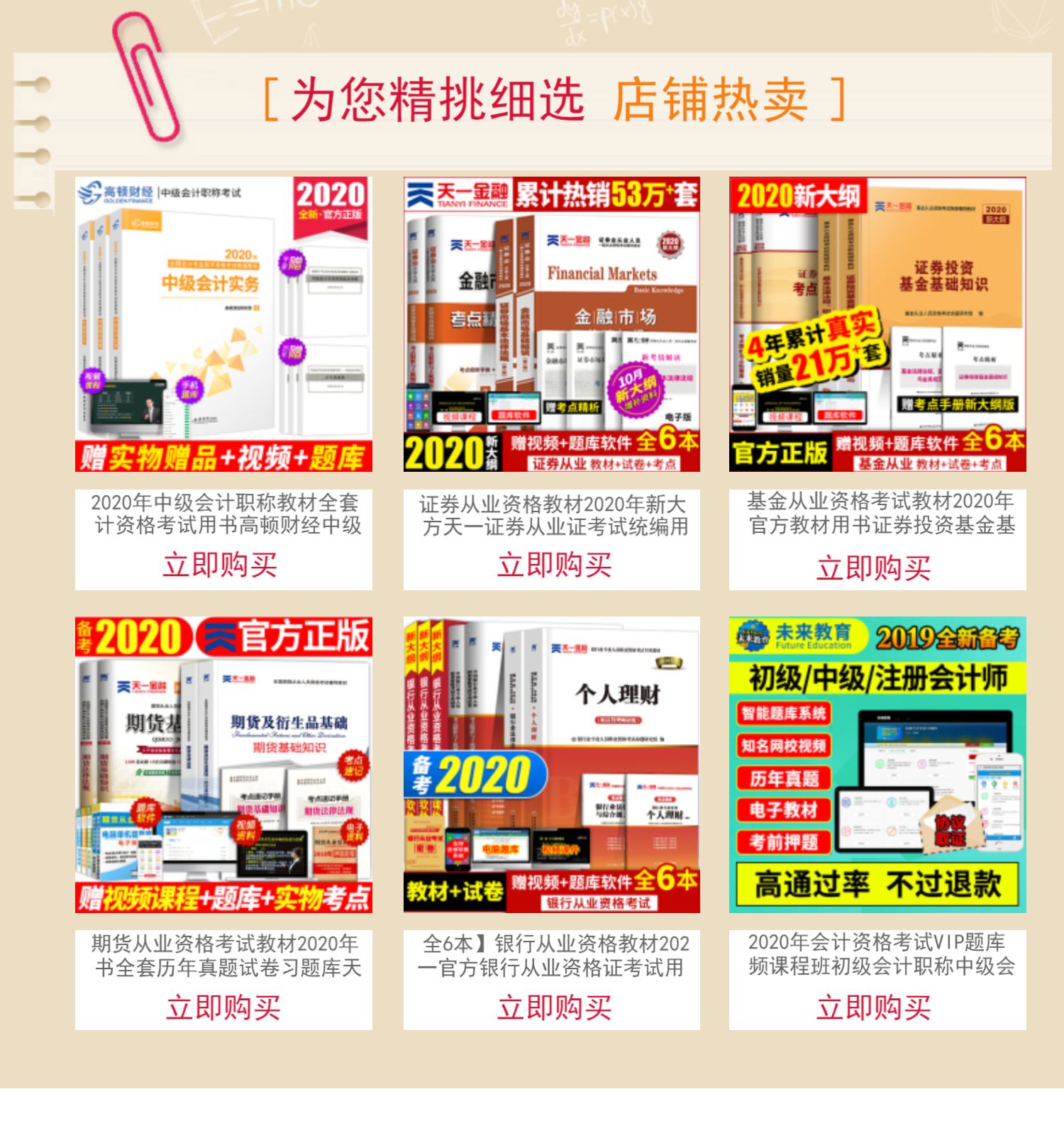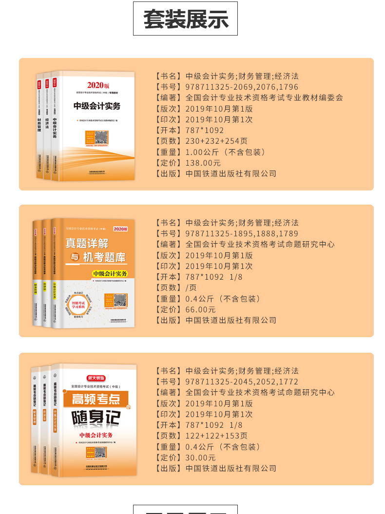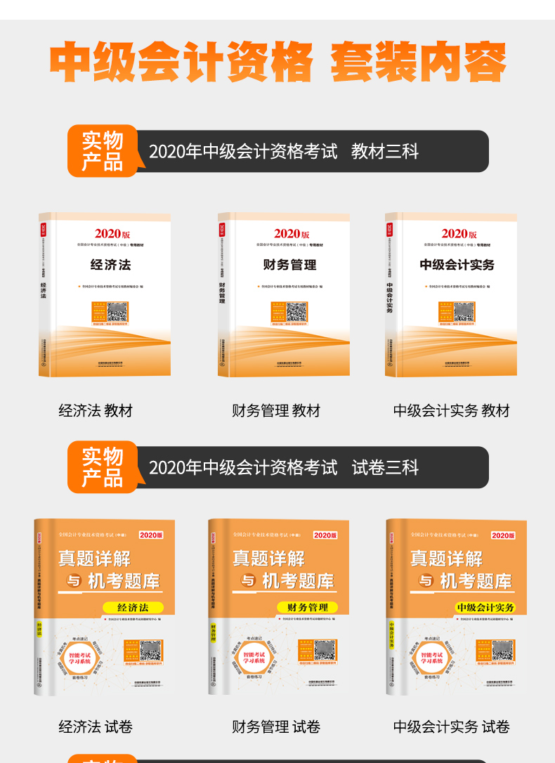 【官方推荐】2020年中级会计职称全套考试用书,《中级会计实务》《经济法》《财务管理》教材,及配套的学习题、历年真题详解,送考点随身记。