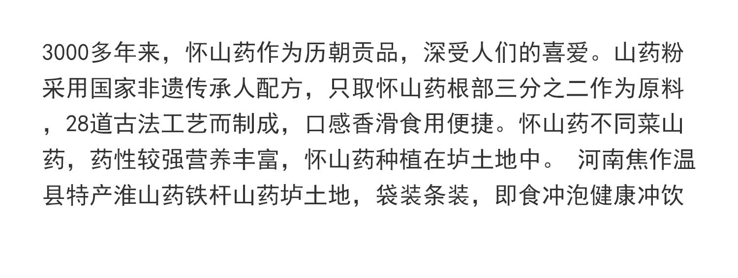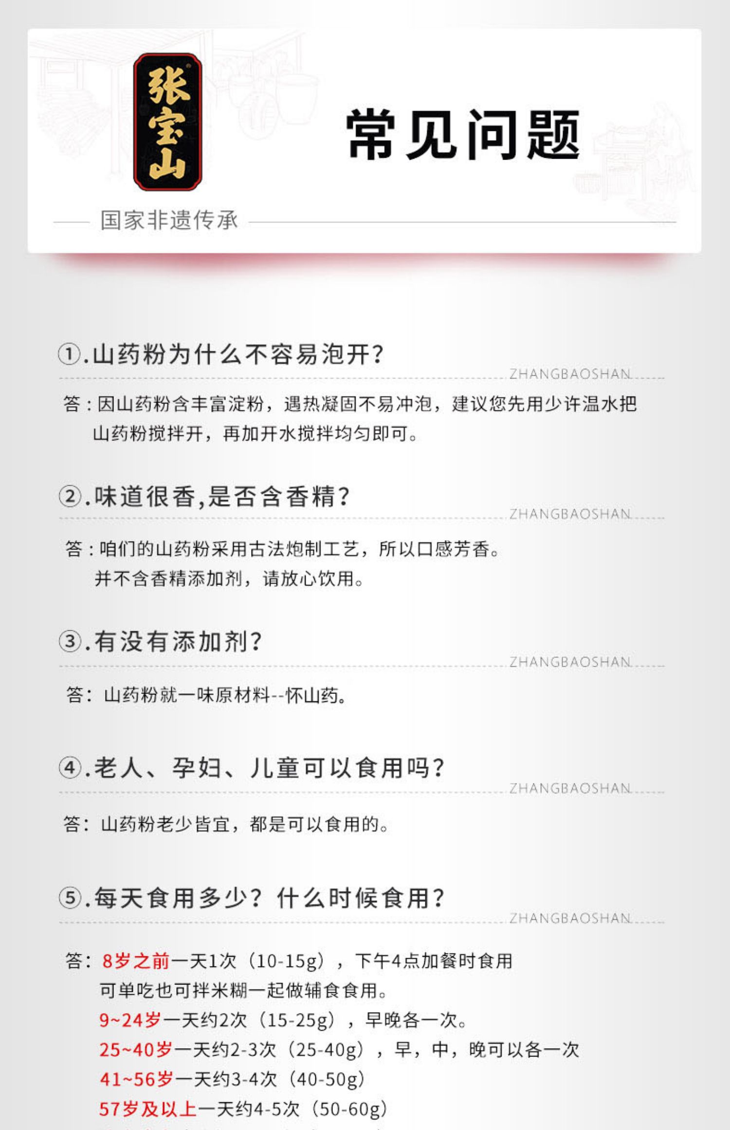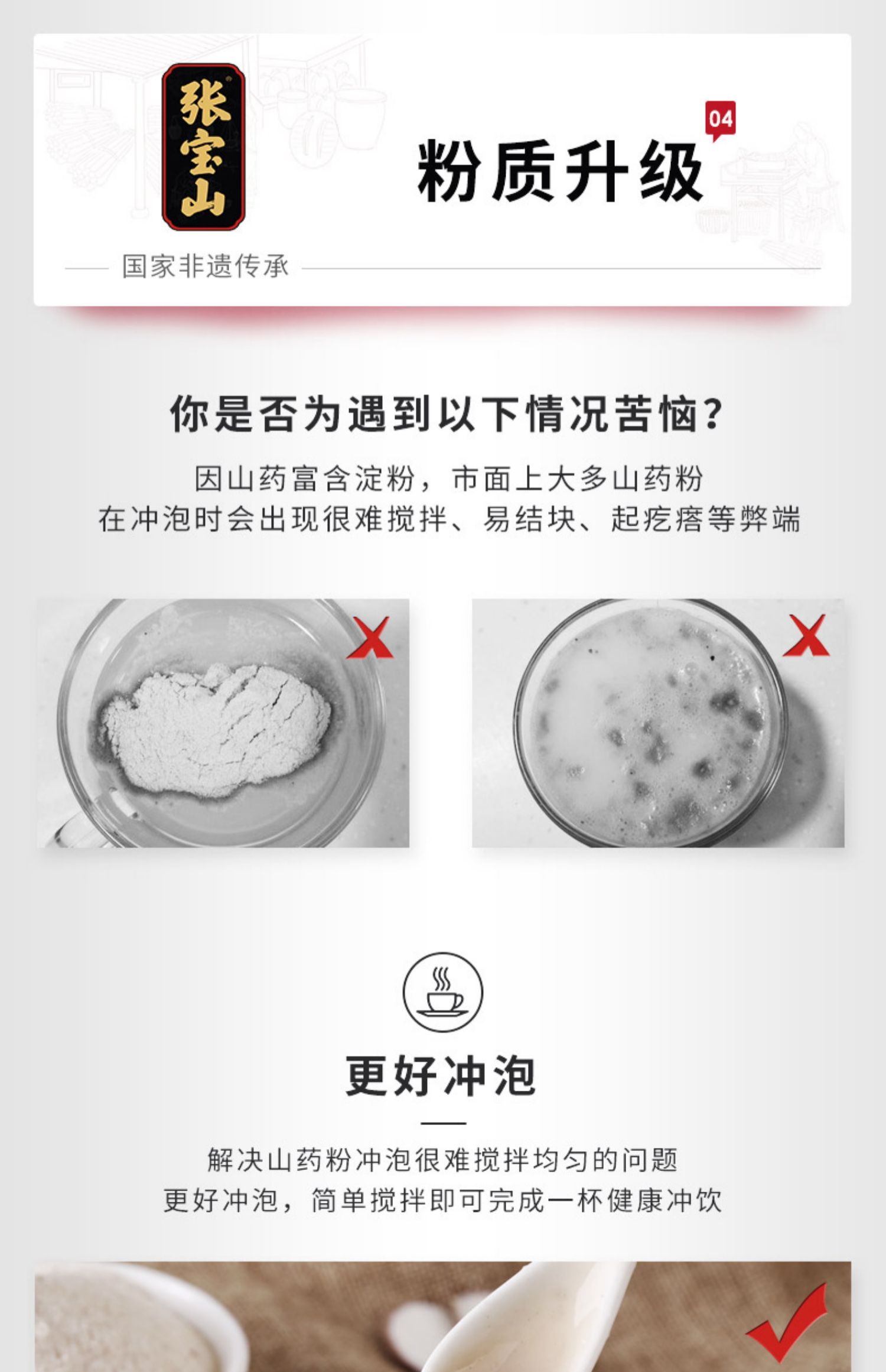 张宝山古法山药粉,仅选【红锈斑】垆土铁棍山药根部的2/3,经非遗传承人28道古法工艺炮制,香滑好喝易吸收,药性更强,养胃圣品,还可代餐,孕妇老人小孩都可食用!