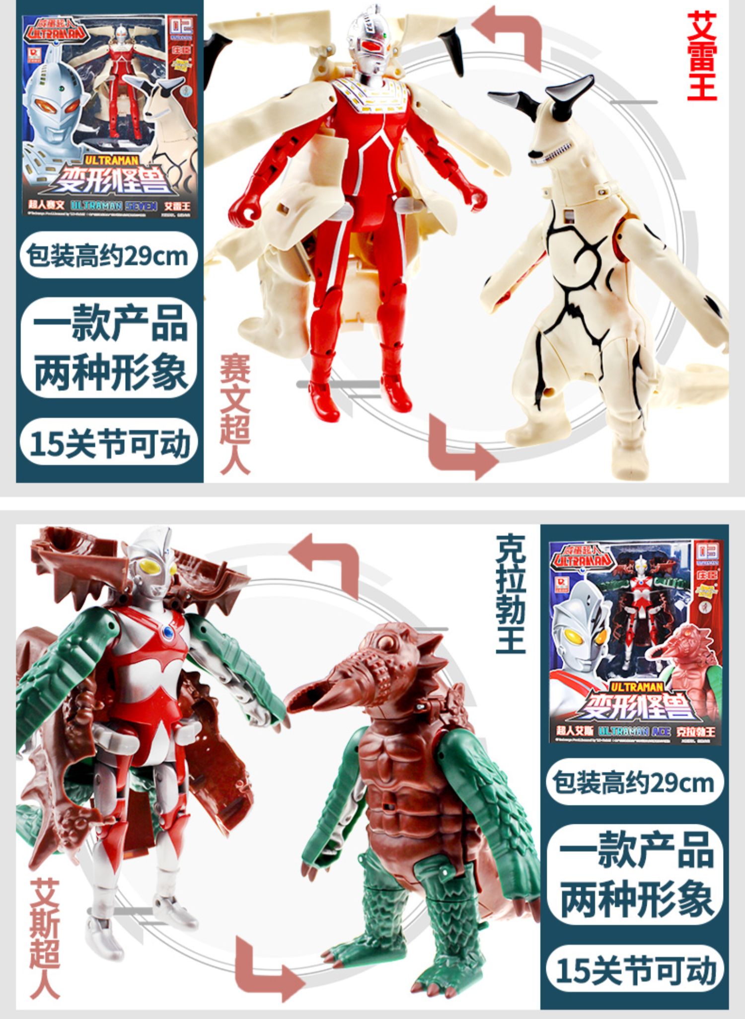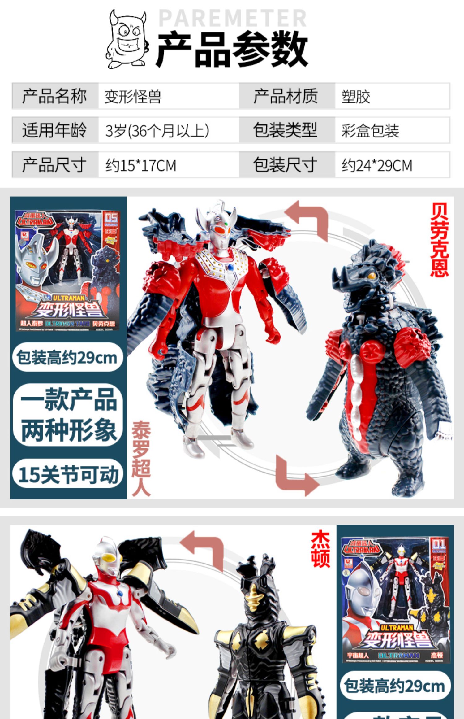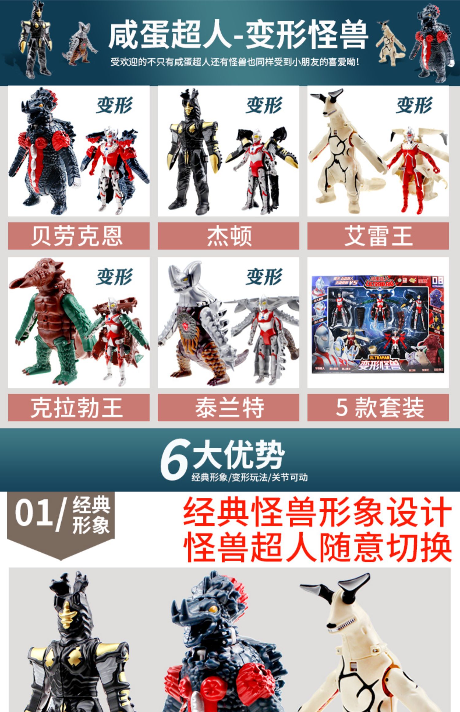 正版咸蛋超人玩具手办,人性化翻折-泰罗奧特曼怪兽!变形蛋,奥特曼打怪兽软胶玩具变形人模型套装,儿童男孩公仔!