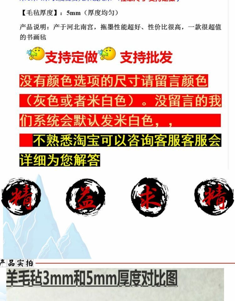 【送米字格羊毛垫、小笔架、笔洗碟】纯羊毛毡书画毡布,书法,国画毯,练写毛笔字桌羊毛垫子,可定制尺寸!