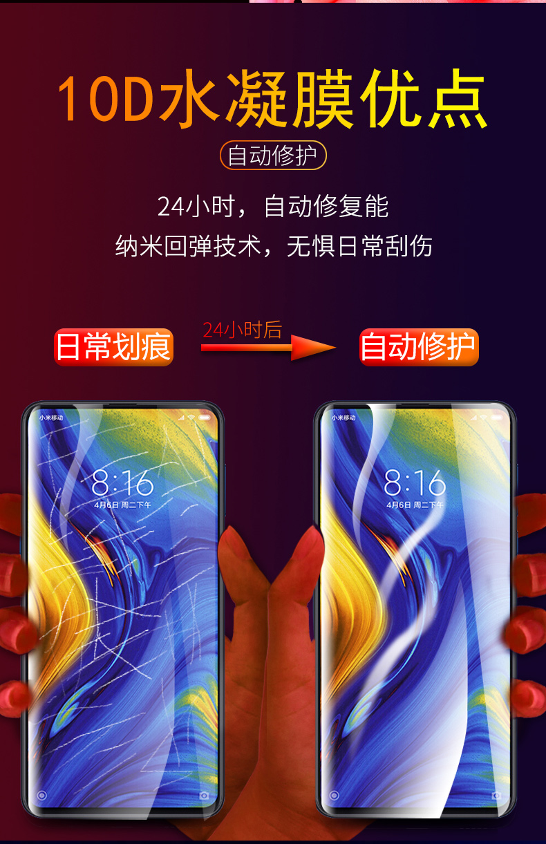 【送贴膜神器+后模】韩国进口10D水凝冻膜,24小时,自动修复刮痕,纳米回弹技术,无惧刮伤!抗蓝光,保护眼睛,无白边,无气泡,无需喷水!还原裸机手感!! 14.8 5 9.8