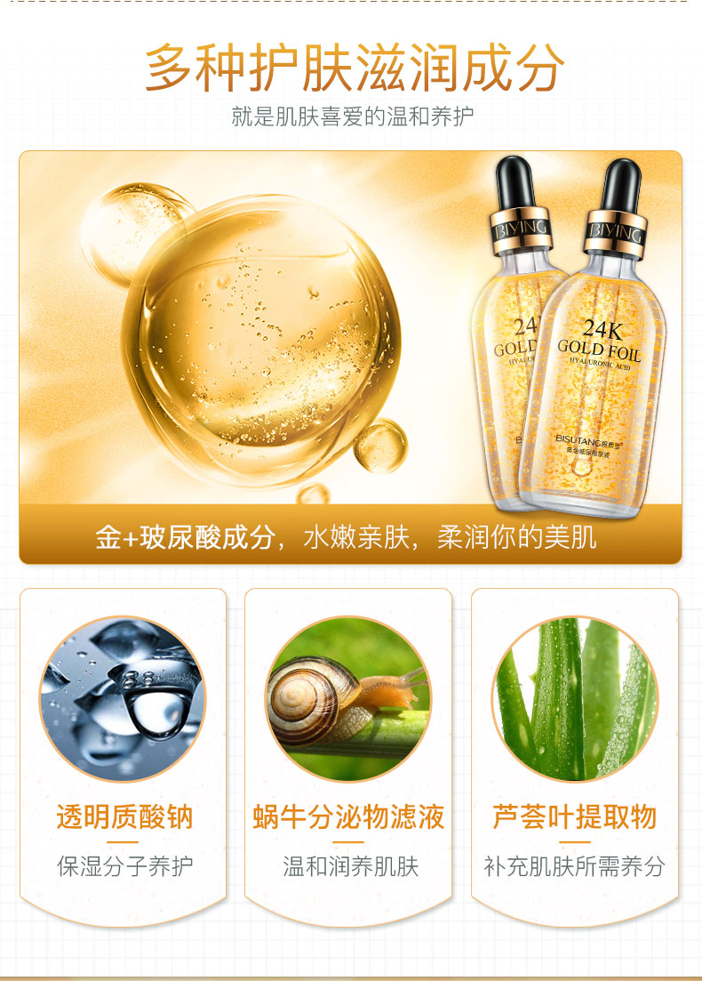 【买1瓶送1瓶同款】【进口原料】24k黄金精华液,小红书爆款~看得见的金箔微粒,添加烟酰胺成分,去黄亮肤+紧致抗初老+淡化细纹+提拉紧致+增强弹性,扭转时光,肌肤不见年龄!