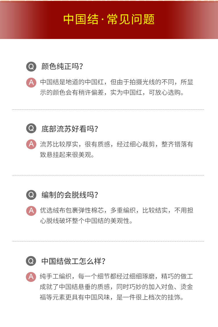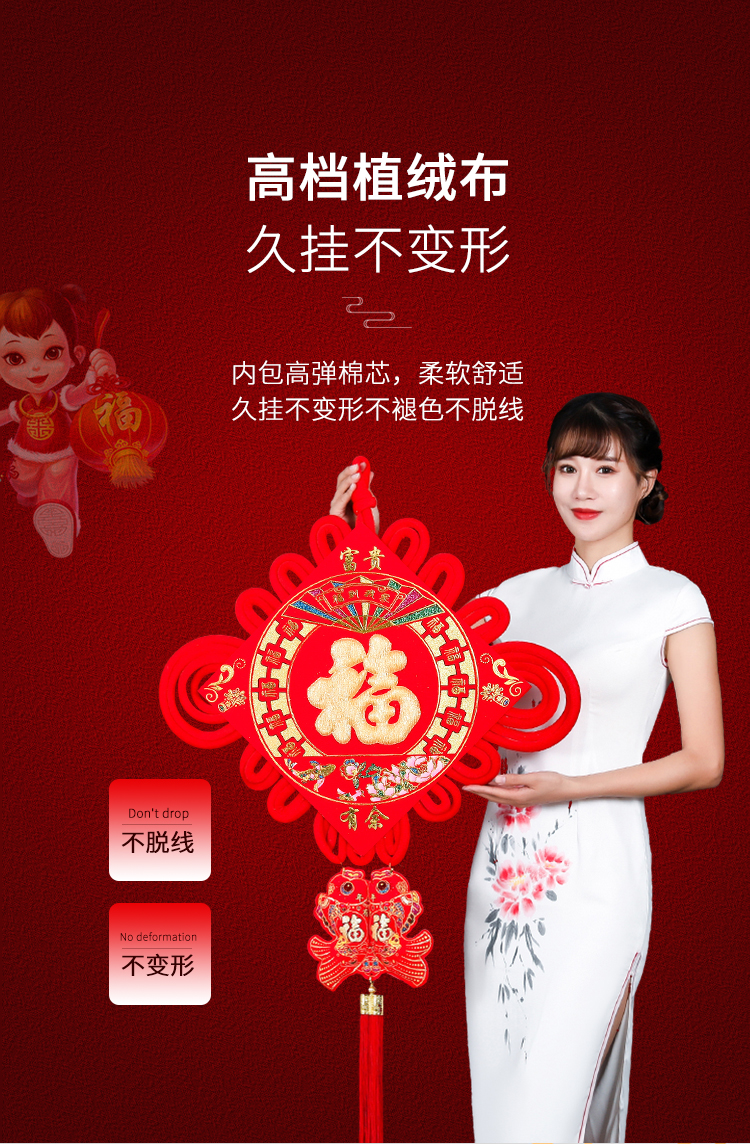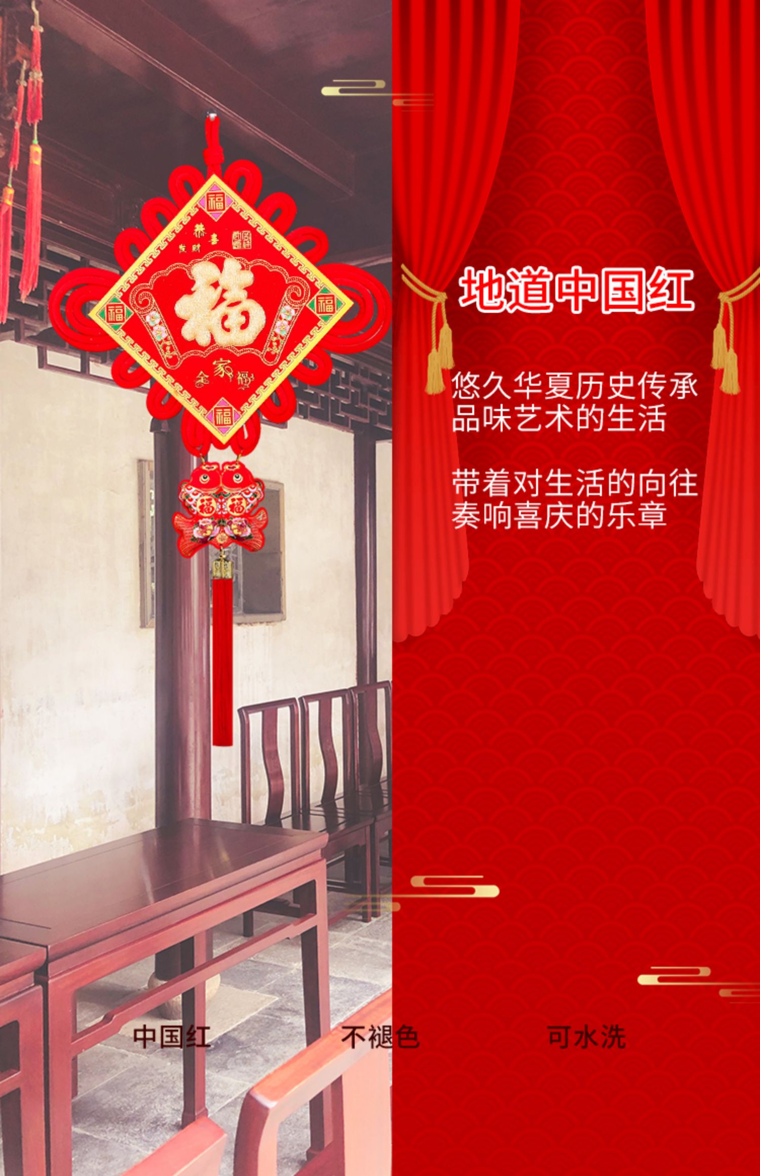 中必备的福字中国结,老师傅手工雕刻编织,拉线平整光滑柔软,流苏紧密垂坠,颜色亮丽鲜艳,浓郁的中国风,让家时刻充满喜庆气息~