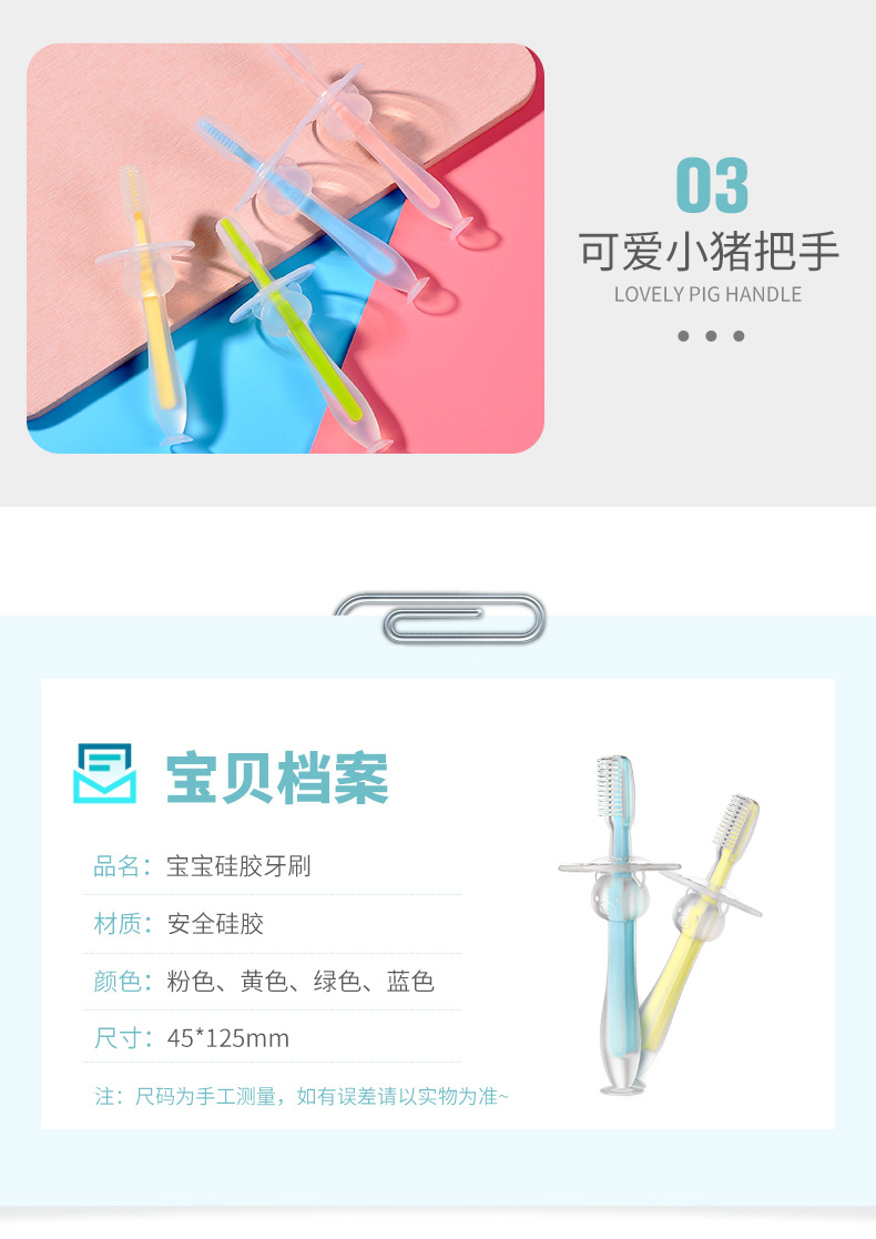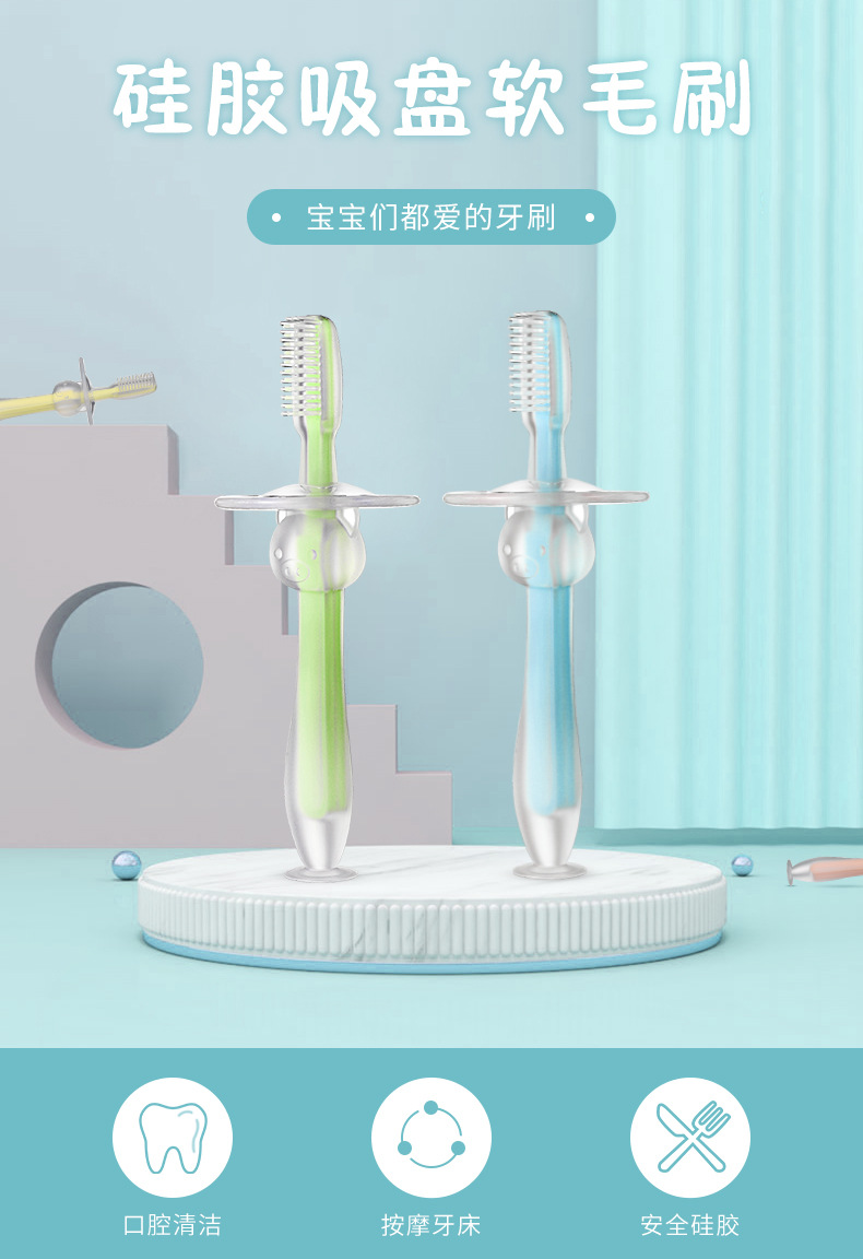 【给宝宝用我选安全的】硅胶软毛牙刷套装,预防乳牙龋齿,硅胶刷毛柔韧细腻,帮助宝宝牙齿健康发育,柔软硅胶,保护宝宝牙龈,轻松刷净舌苔奶垢,精心呵护,健康成长,专为宝宝设计的牙刷!【多色可选】