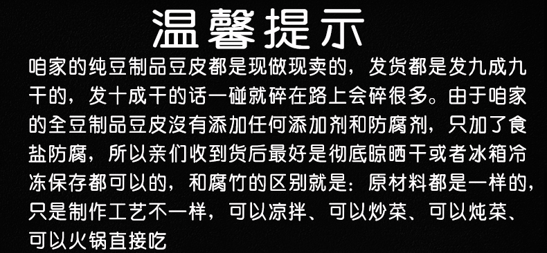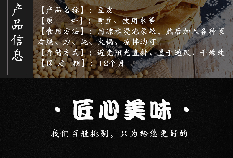 优质黄豆制作,一周内新鲜做出来的人造肉豆皮,老家传统工艺,未添加增强剂防腐剂,全豆制品,味道鲜美又营养。
