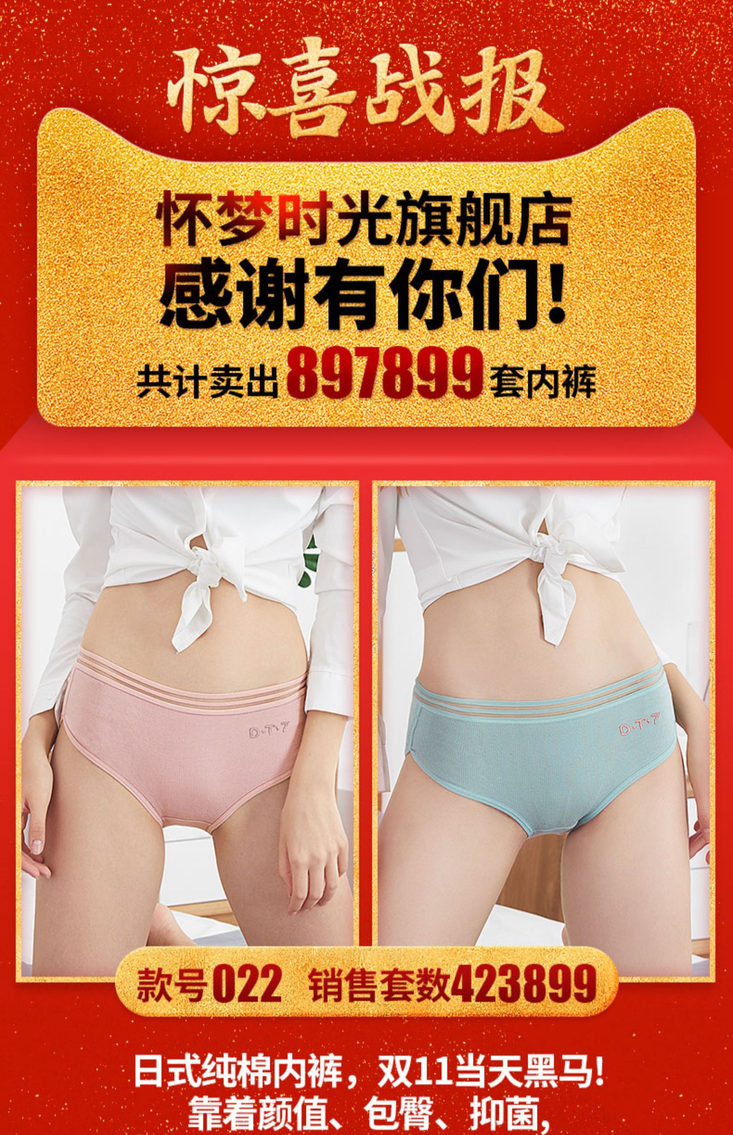 怀梦抗菌纯棉内裤!本命年款!新的一年也要好好爱自己!AA级抗菌婴儿棉面料,亲肤舒适又透气,温柔守护你的娇嫩肌肤,呵护女性健康,远离妇科病!不仅穿得舒服,还有防夹臀!超值4条装只要24.9!快下手~