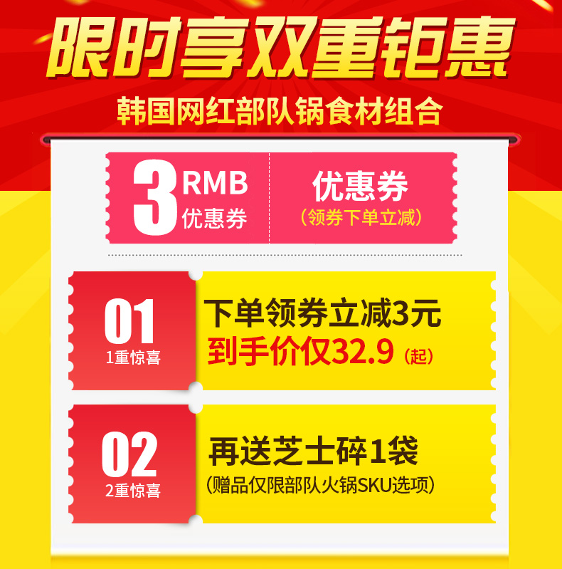抖音推荐,下单就送芝士年糕,还没有吃过一顿正宗的韩式网红部队火锅?你真的是OUT了!九大食材专业搭配,内含芝士碎奶酪,3口味芝士年糕,蛋黄年糕,3-5人份量,10分钟让你成为韩料高手!