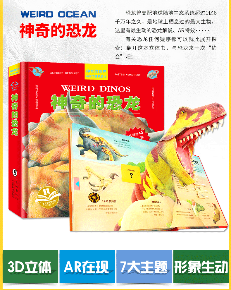 【书店首发】儿童恐龙百科立体书,内含超过40个弹出、翻页、视窗和插拉机关,采用优质环保纸张,全彩卡通图文,情景故事,亲子游戏,超炫AR体验,探索自然奥秘!