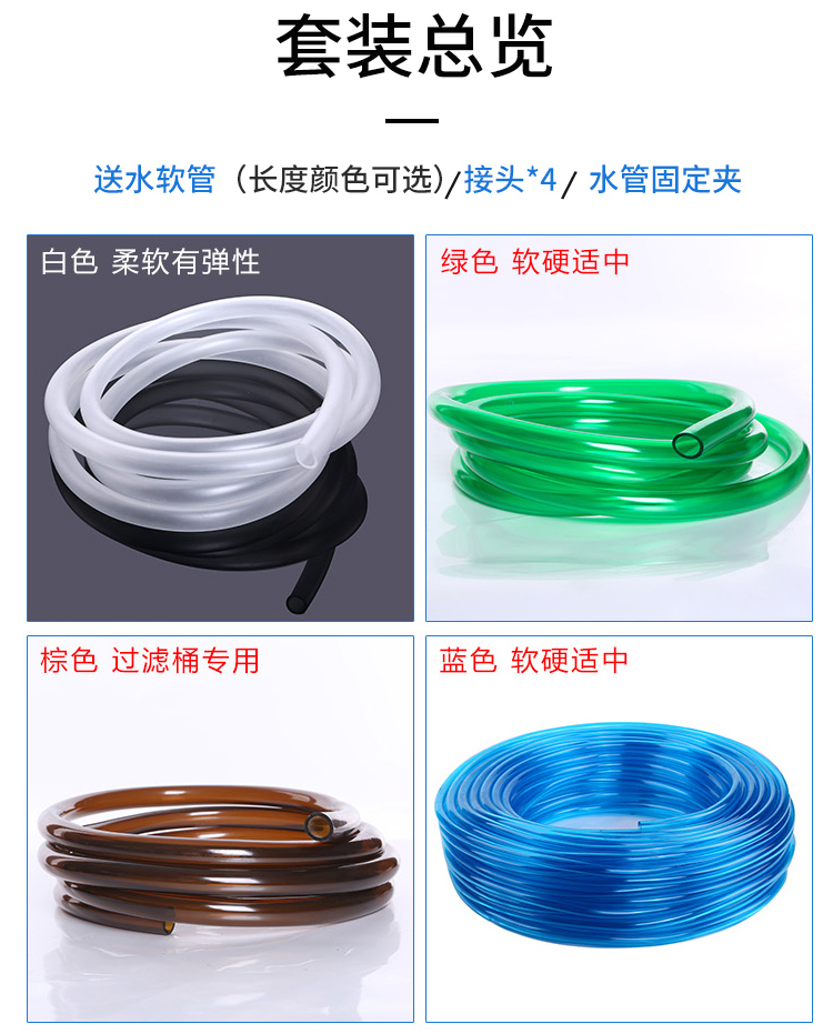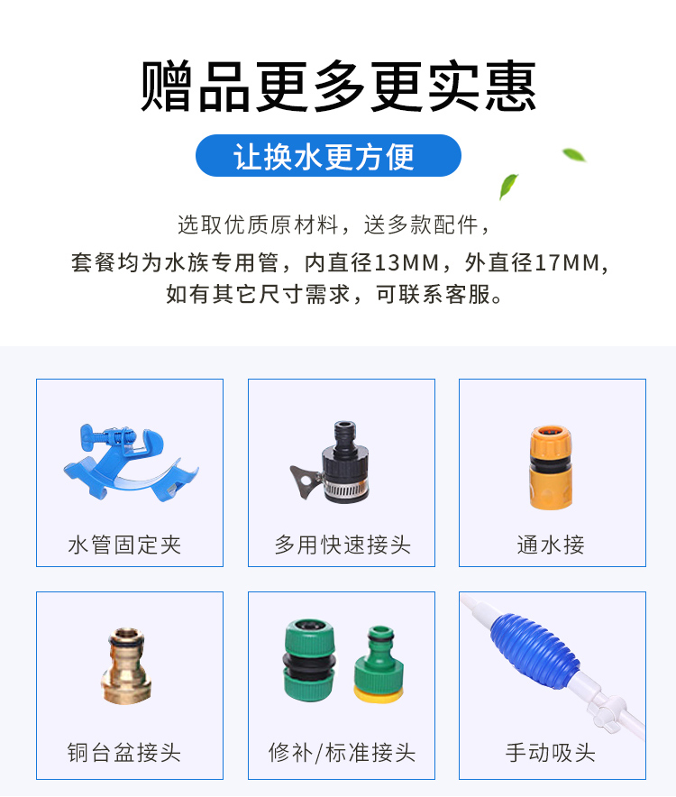 爱鱼须知:此售鱼缸换水管,均为水族专用,PVC弹性增氧软管,采用环保无毒材质,耐老化,冬天不硬,被誉为中国绿色环保产品,加水排水,一套搞定~【下单即送8件套】