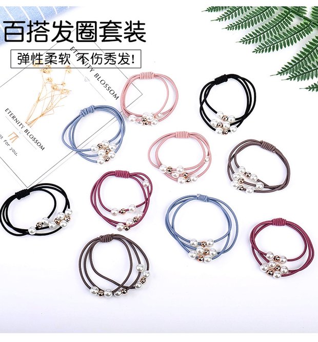 【金冠店】抖音超火的珍珠发圈,10条装清新发圈,无接缝,高弹力面料,经久耐用,弹性柔软,不伤秀发,时尚设计,质感清晰,女神百搭精选!