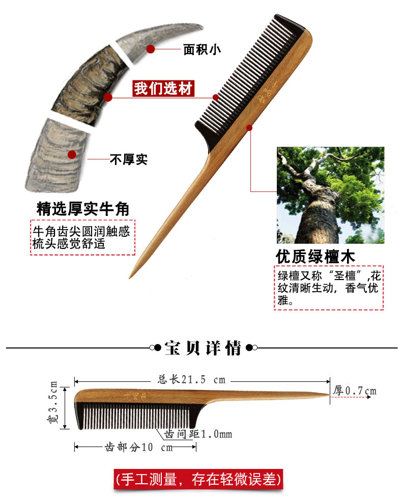 纯手工牛角木梳,光泽细腻,触感润滑,解于大自然,解决秋冬静电,毛燥之困扰,让你购物无忧!