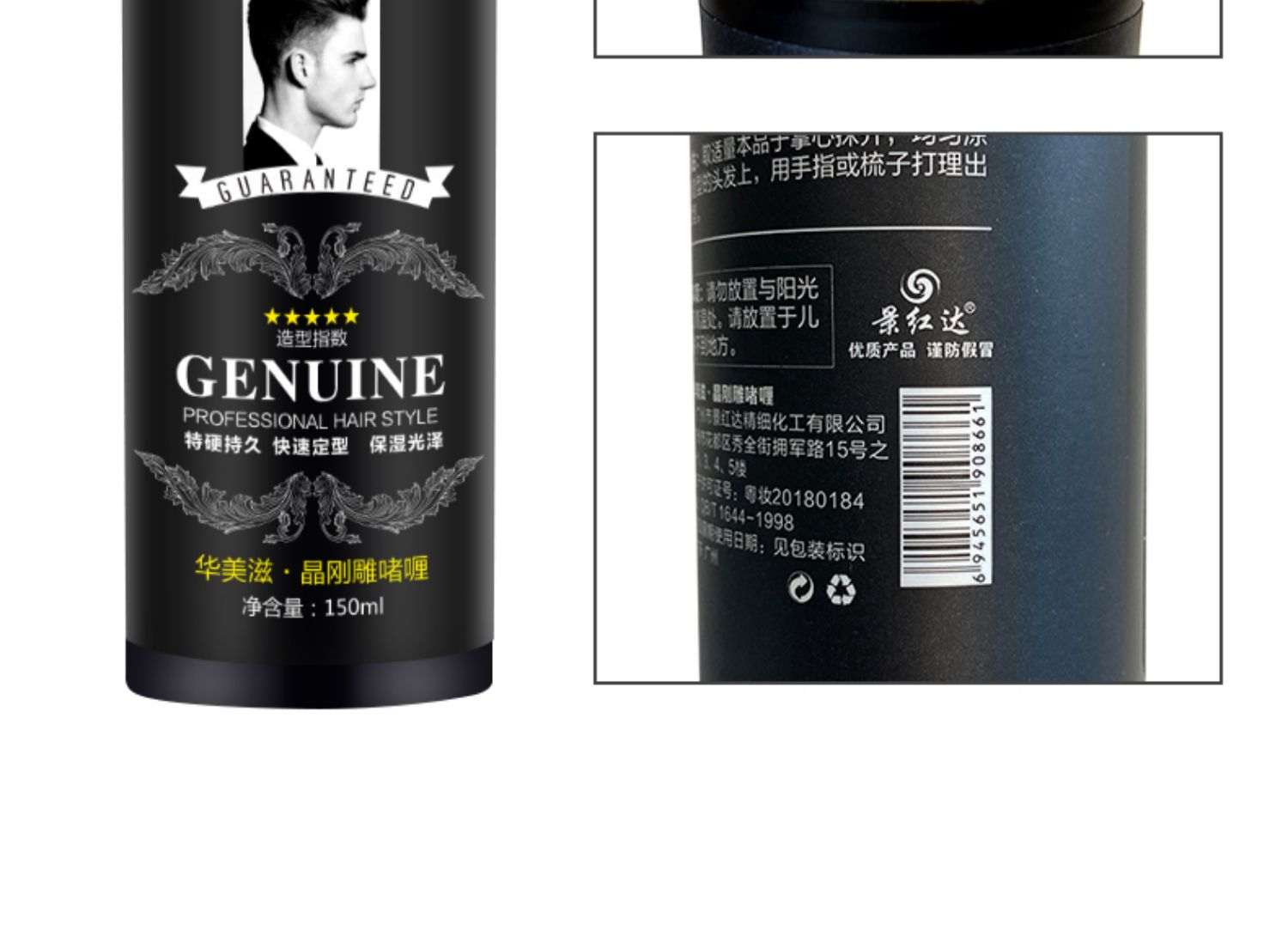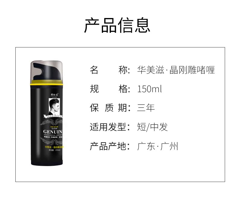 华美滋男士晶刚雕啫喱膏,高光保湿油头啫喱水,150ml大瓶装,特硬持久,强力定型,清爽造型,清淡香气,一抹就型,3倍快干!