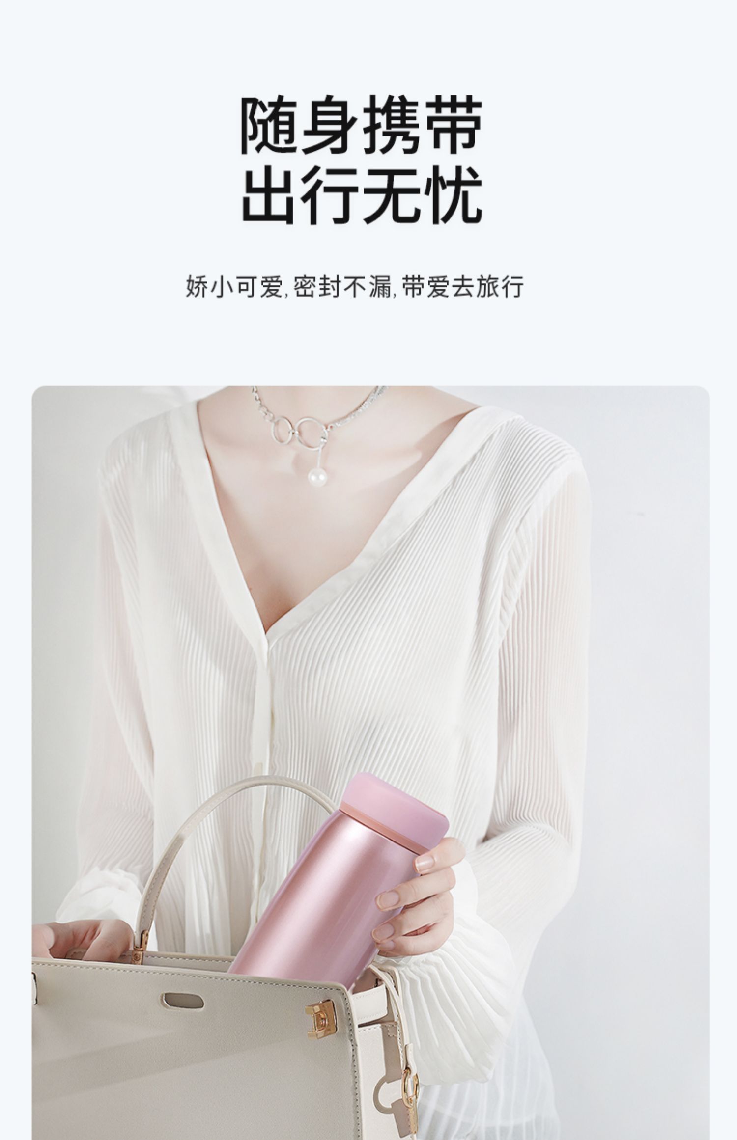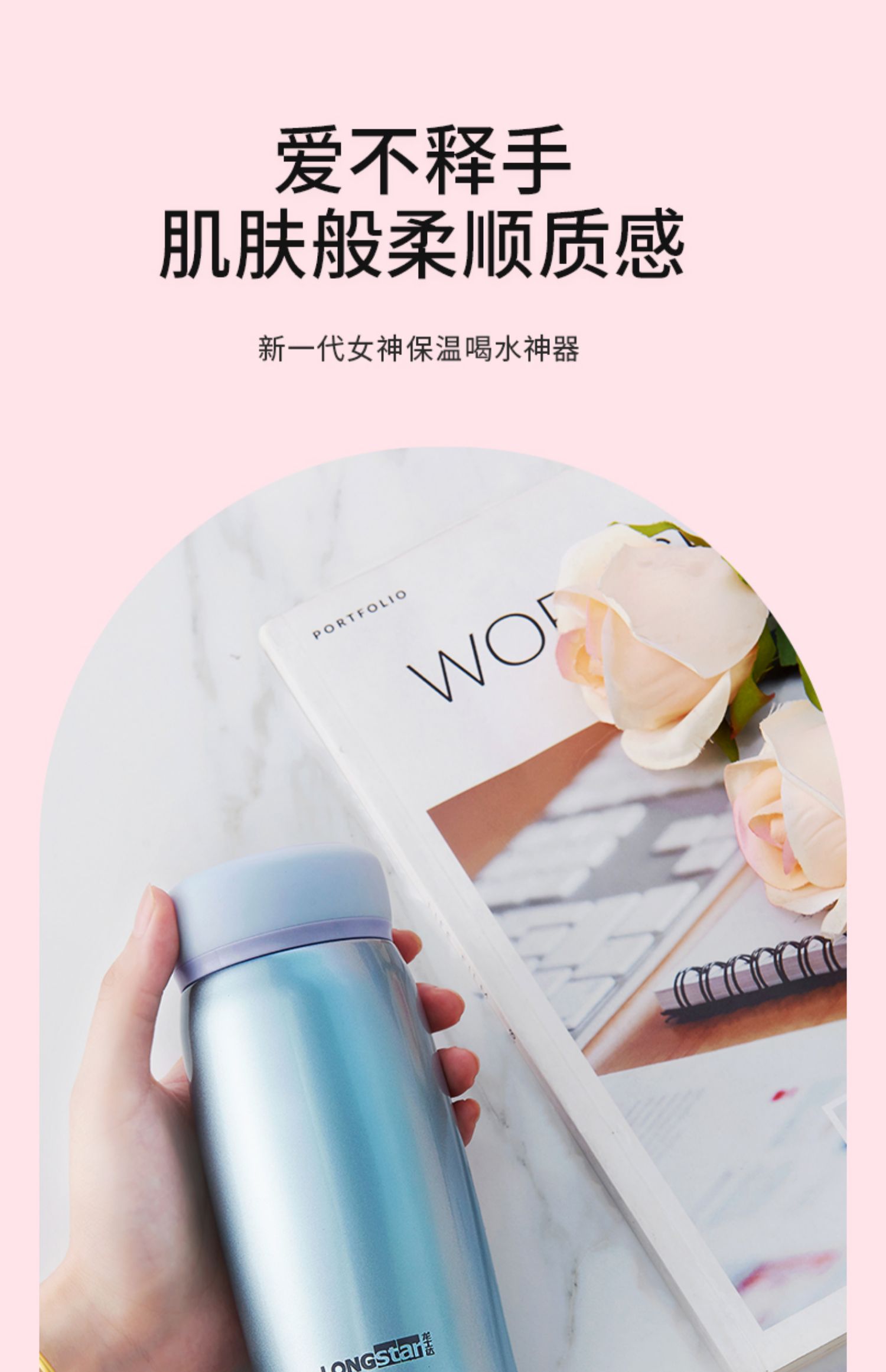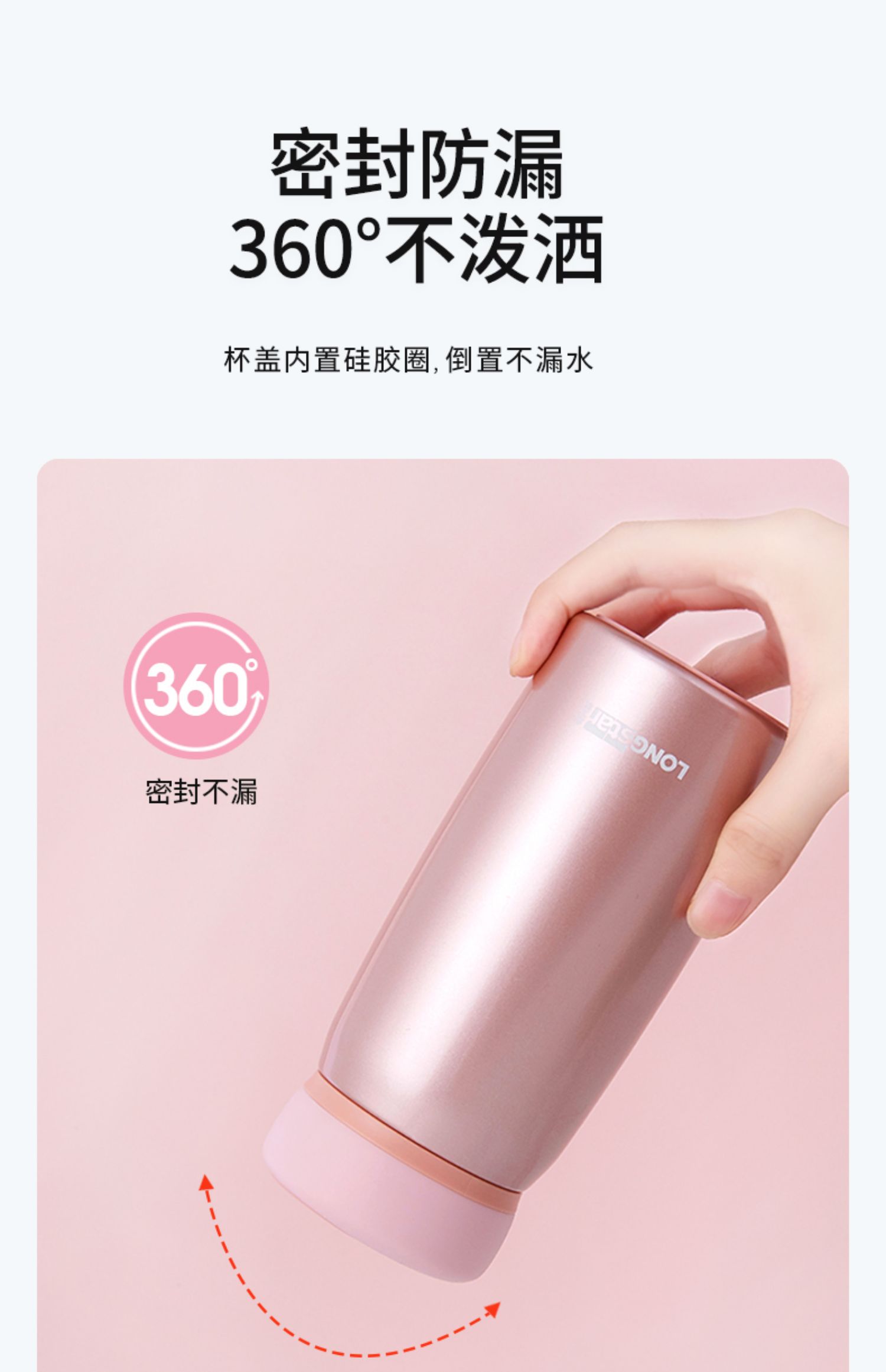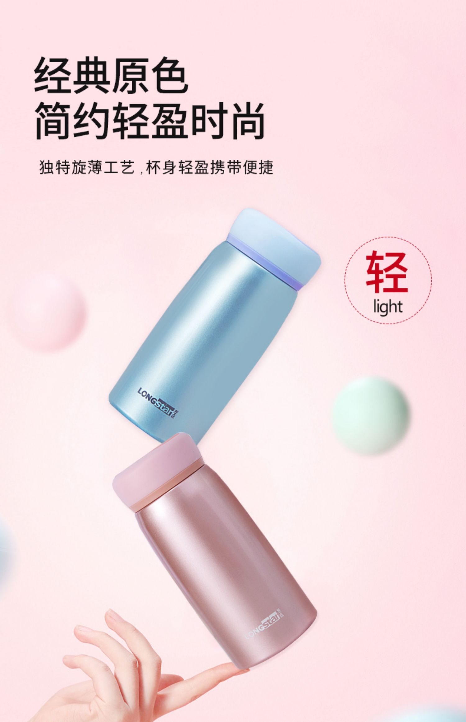 医用316不锈钢,耐腐蚀,耐氧化,光泽好,长效保温,密封防漏,轻盈时尚,隐藏提手,食品级材质,英国进口tirtan内盖,经典原色,简约轻盈时尚,小巧便携随身
