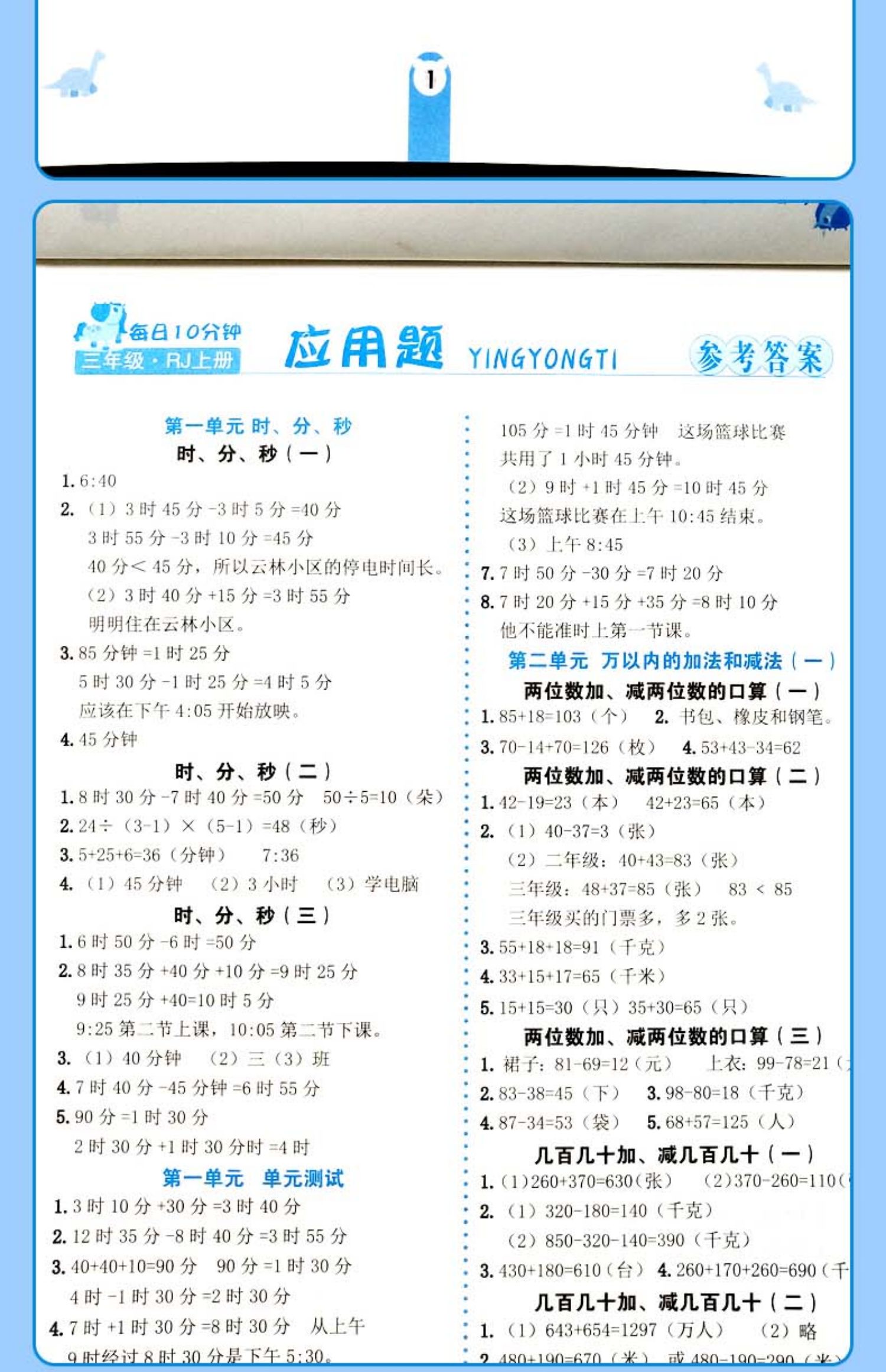 口算题卡三年级数学思维训练人教版