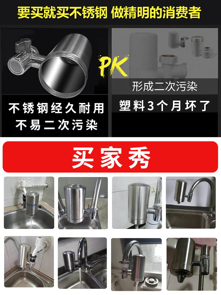 304不锈钢龙头,出水直饮,保留矿物质。高效椰壳活性炭滤膜,强效除菌除氯,优惠套装,滤芯可清洗,五级复合过滤,不用电无废水,安装便捷,赶紧下手,捍卫您和家人的饮水健康吧!【赠运费险】