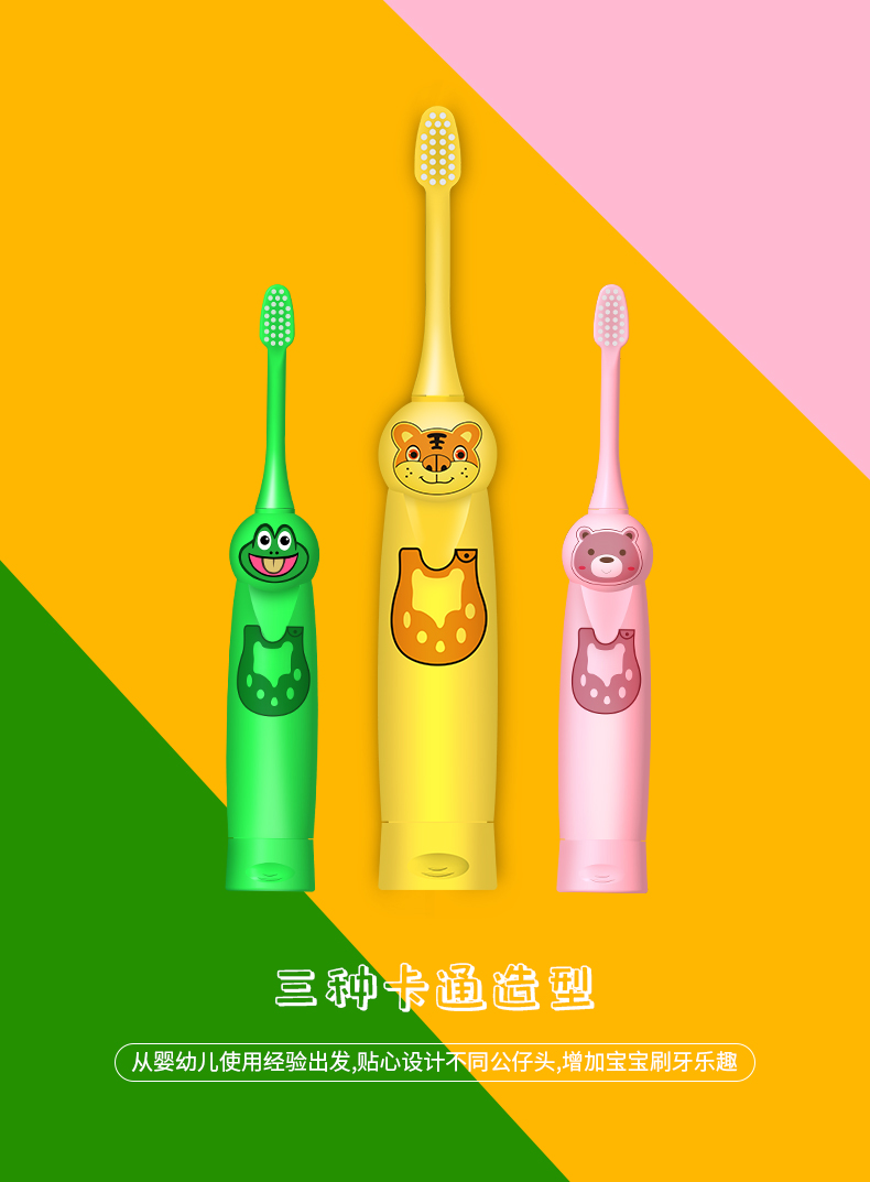 【送三件套:牙膏+电池+洗漱袋】卡通造型,一眼就喜欢,超静音震动设计,360°赶走口腔垃圾!【赠运费险】