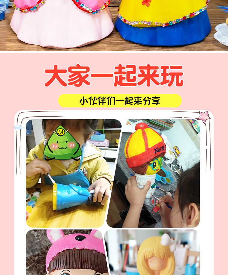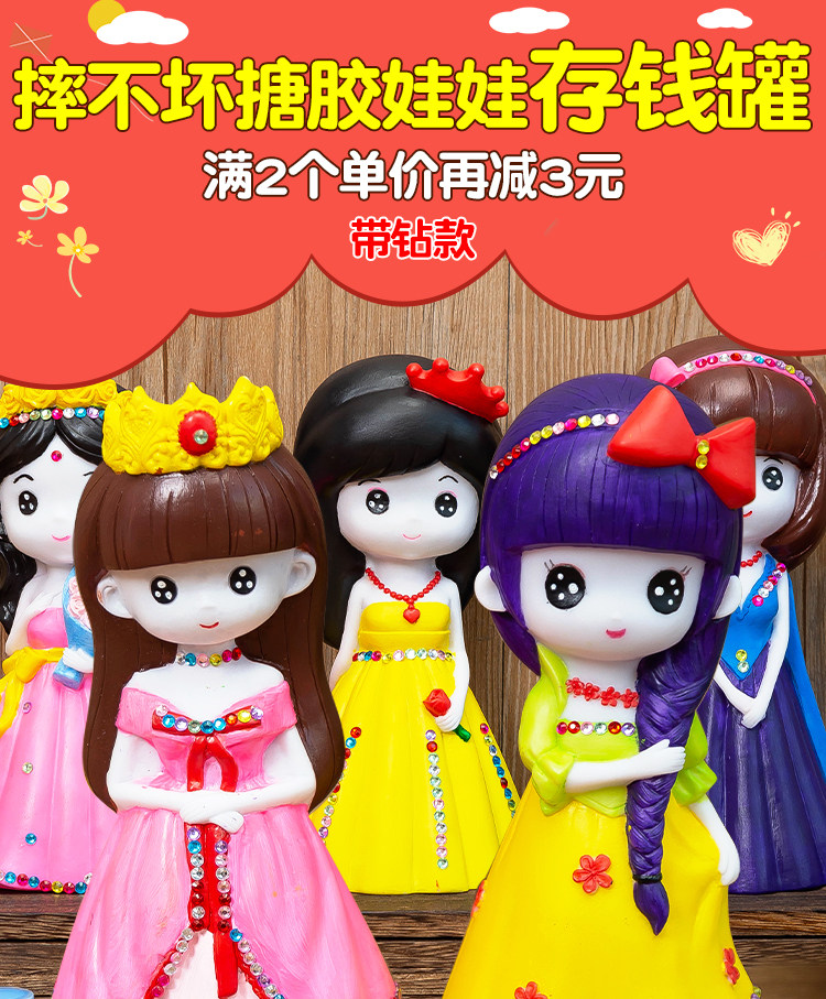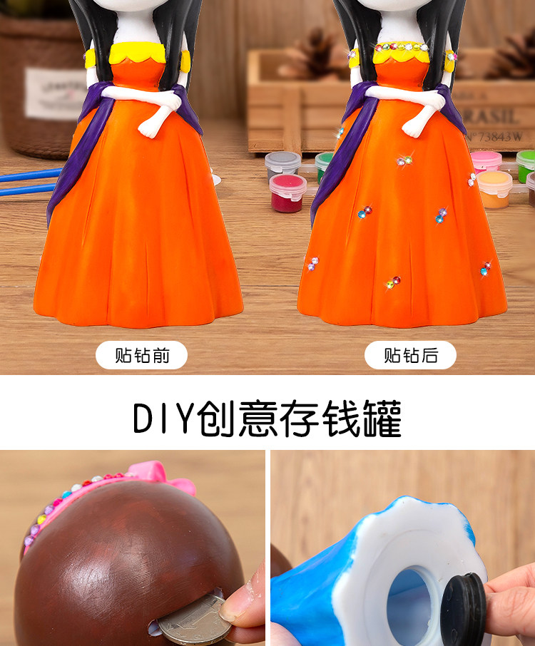 儿童涂色摔不坏石膏娃娃 存钱罐