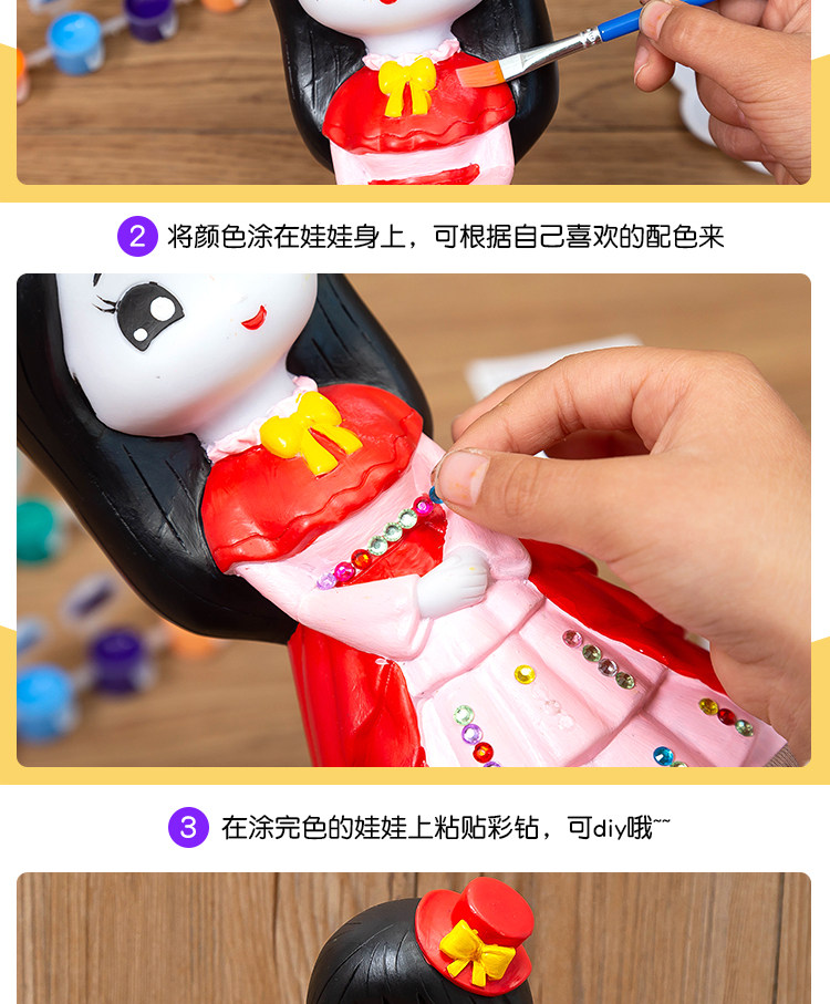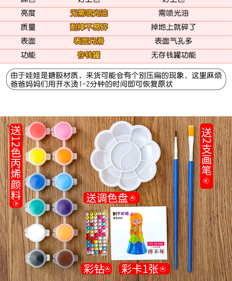 【童画工坊DIY】儿童涂色摔不坏石膏娃娃,下单送12色颜料笔+调料盘+彩图一张,送2支画笔,环保颜料,轻松上色,开发孩子动手能力!越多越省!价格实惠!抓紧下单哟