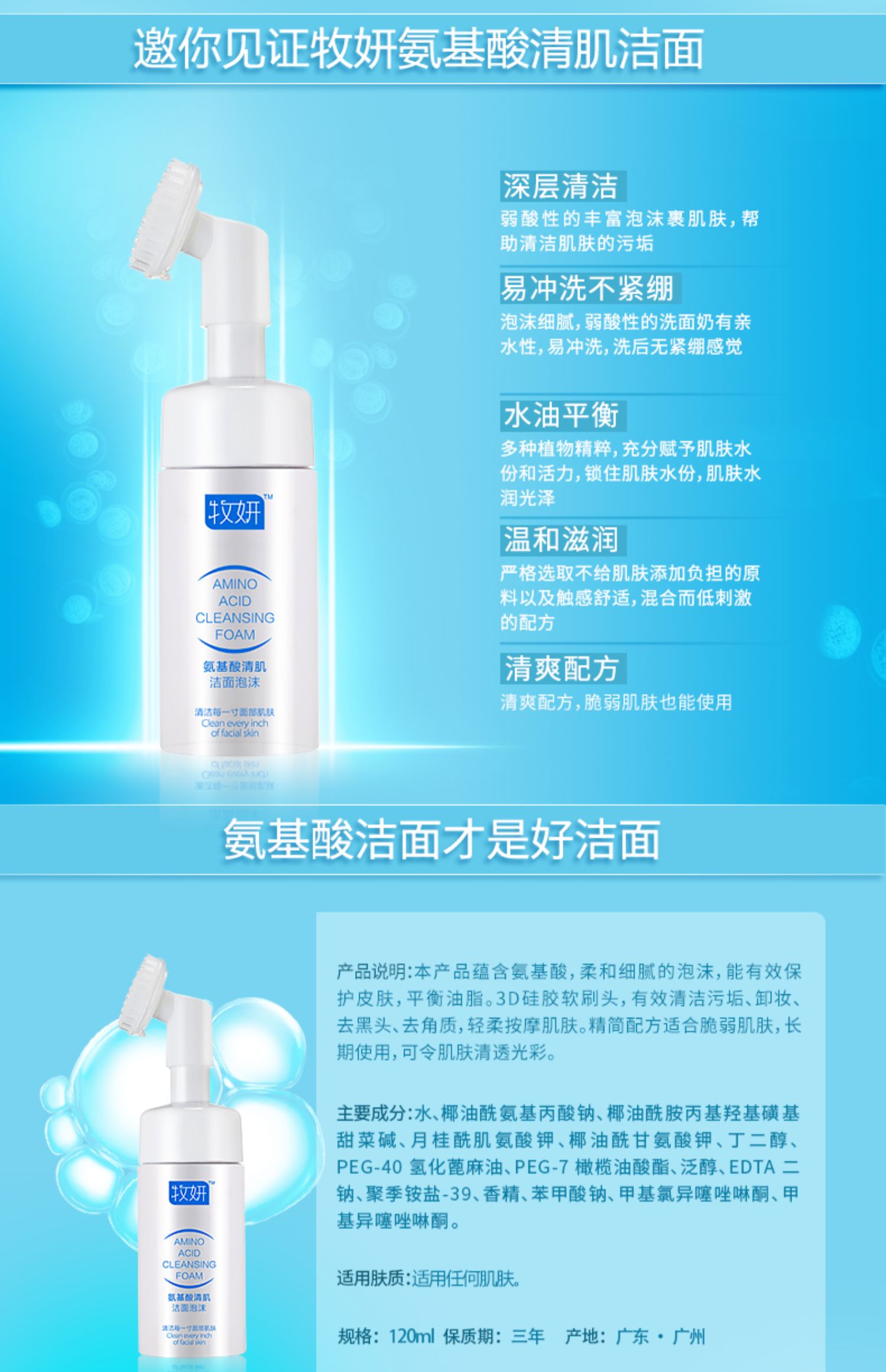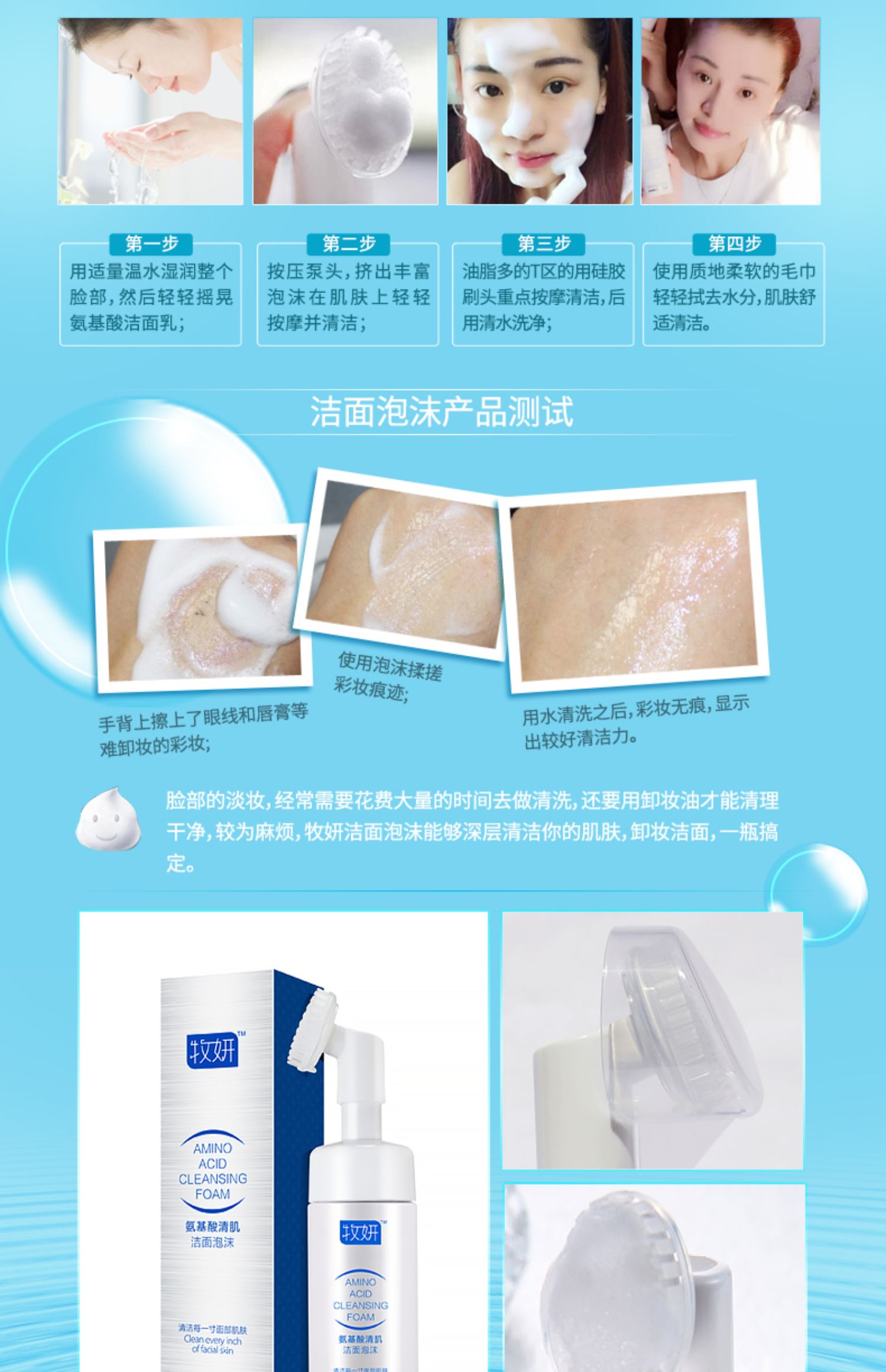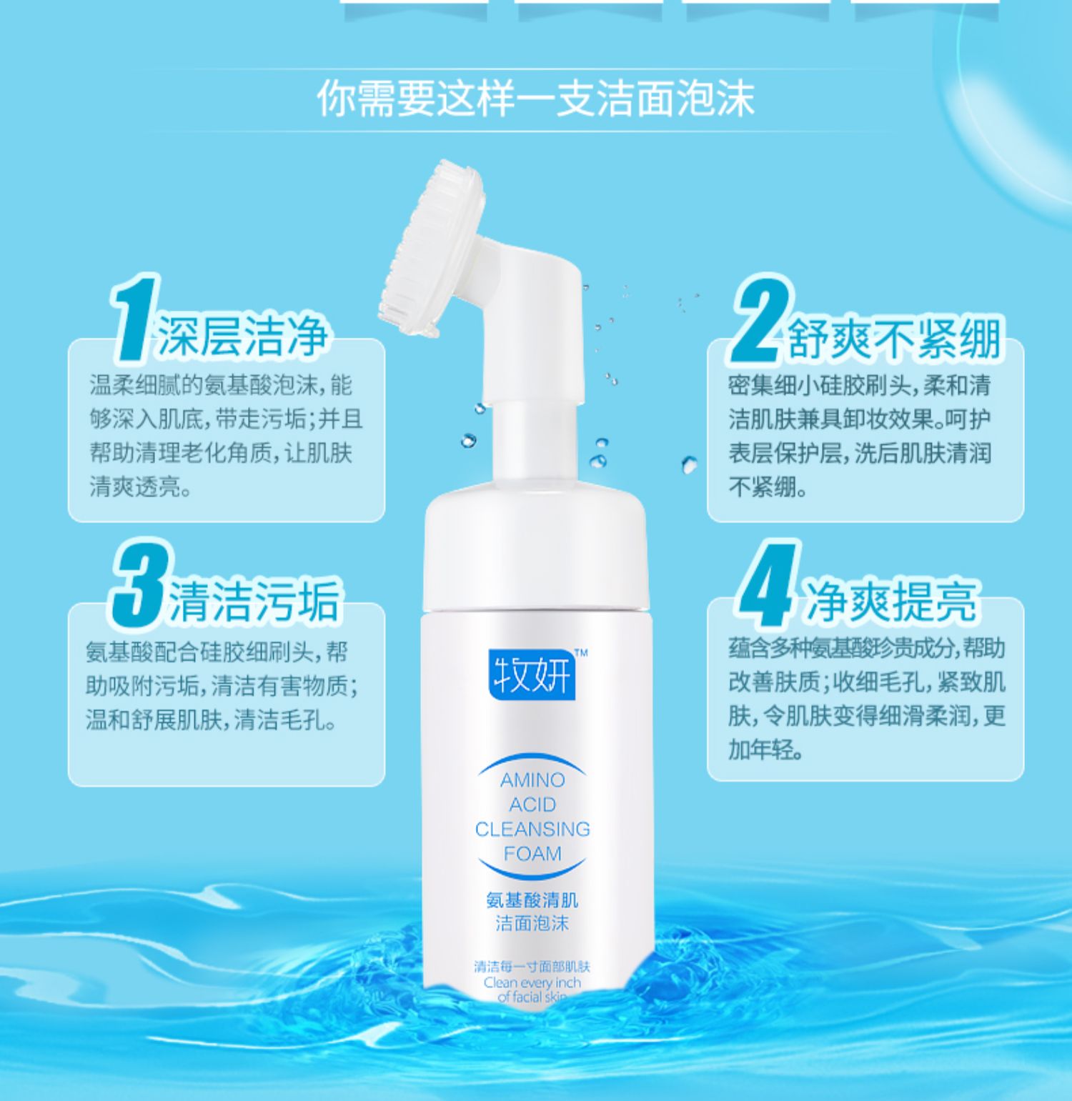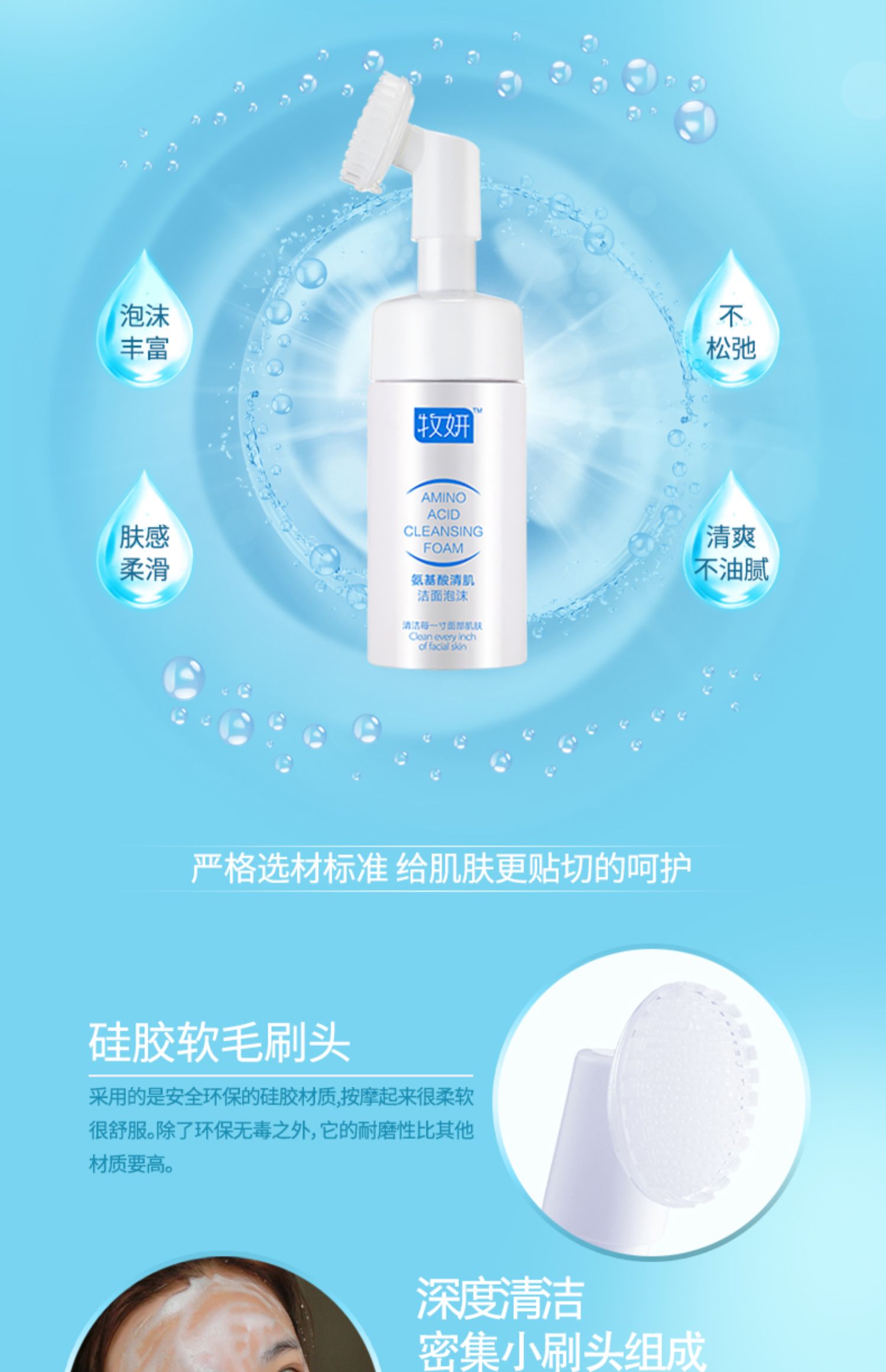 牧妍氨基酸洁面泡沫,自带硅胶软毛刷头,肤感柔滑,泡沫丰富,紧致不松弛,清爽不油腻,温和不刺激,深层清洁,洗出白皙肌!【赠运费险】