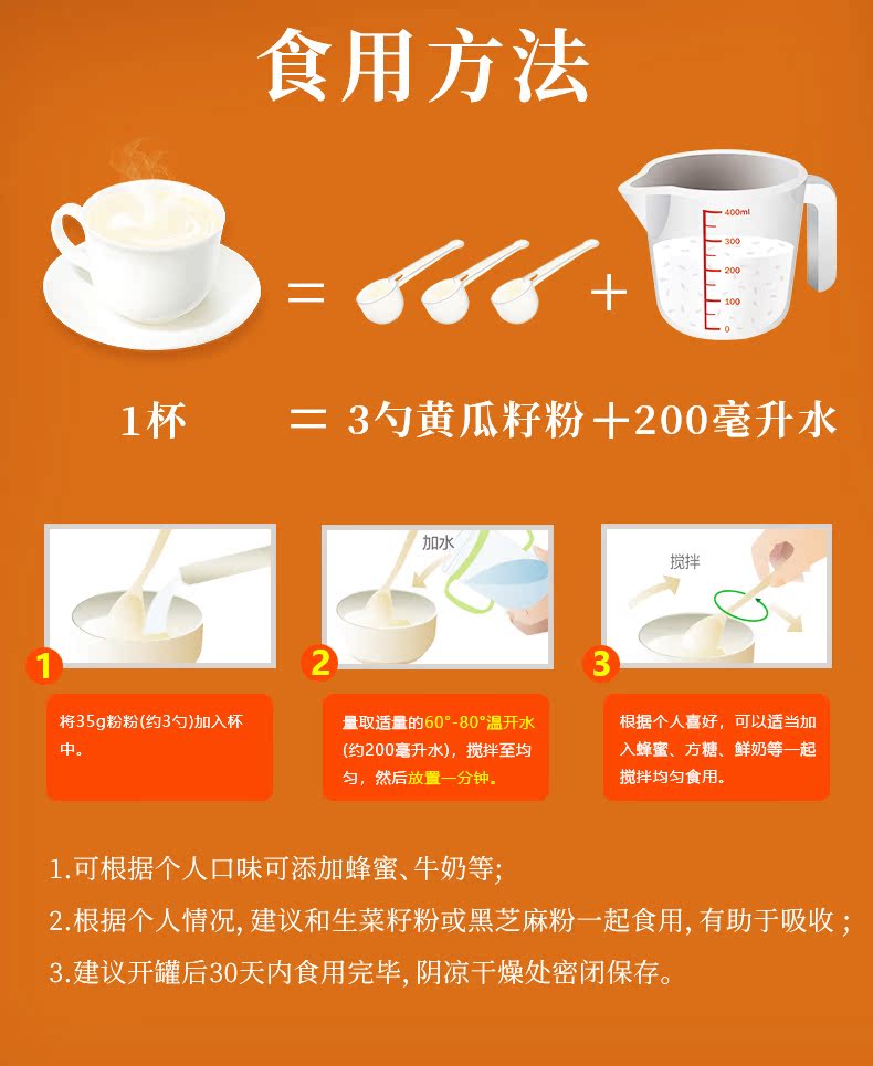 优质东北黄瓜籽,天然无添加细腻易吸收,原粉精细碾磨,绝无化学添加,早晚代餐,建议搭配黑芝麻粉,自然营养和口感。