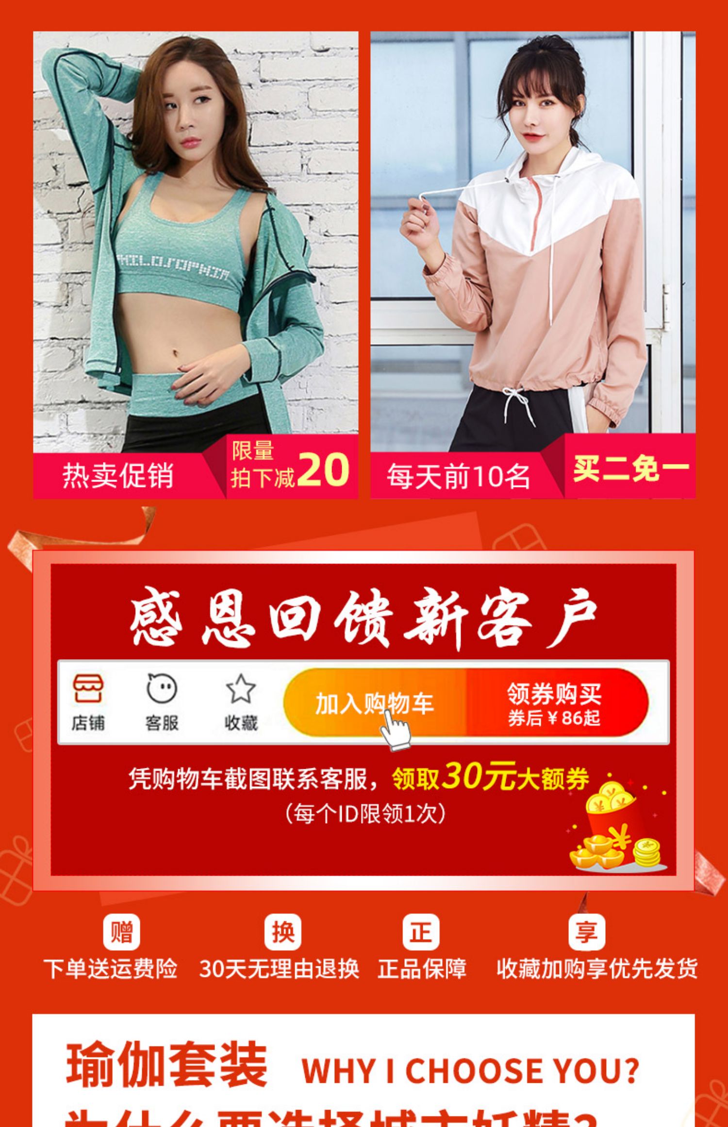 高品质瑜伽衣,超弹速干运动面料,无缝设计,加长套指袖口,健康,亲肤,透气,不褪色,细节彰显品质,多色可选,告别撞衫,一套衣服适合多种运动场合,一年四季都能穿,让运动束缚!【赠运费险】