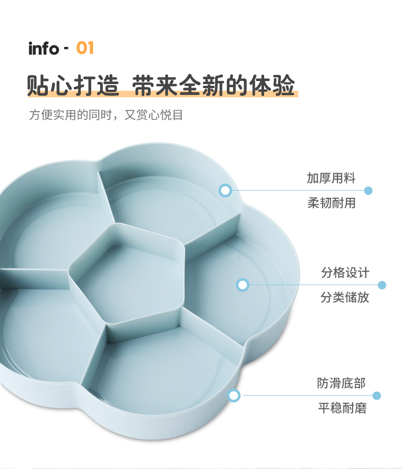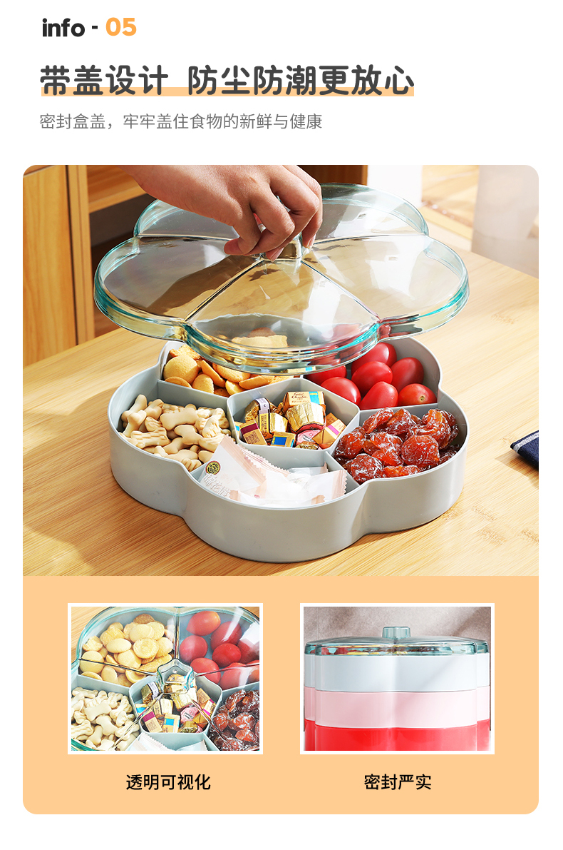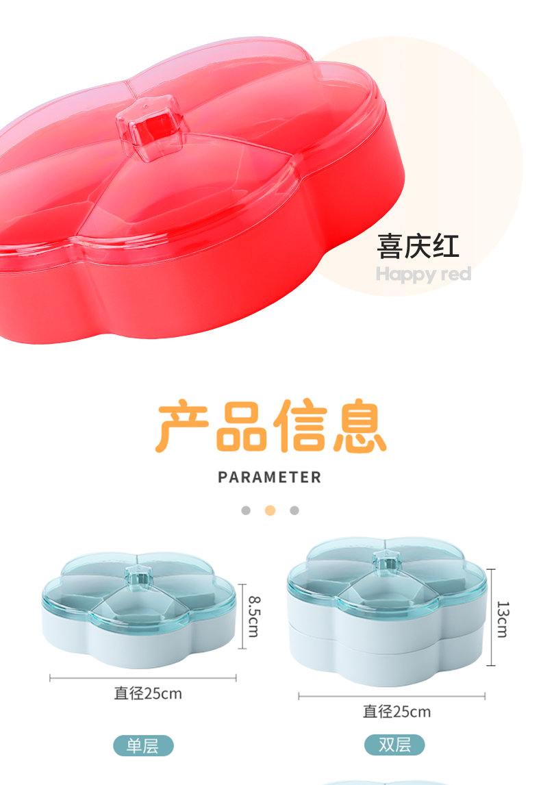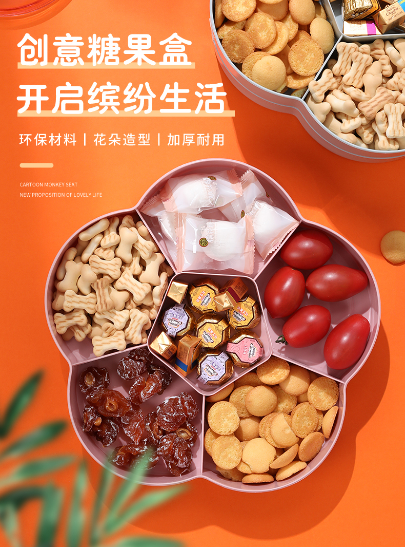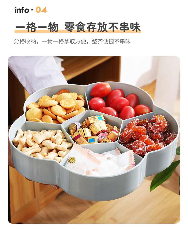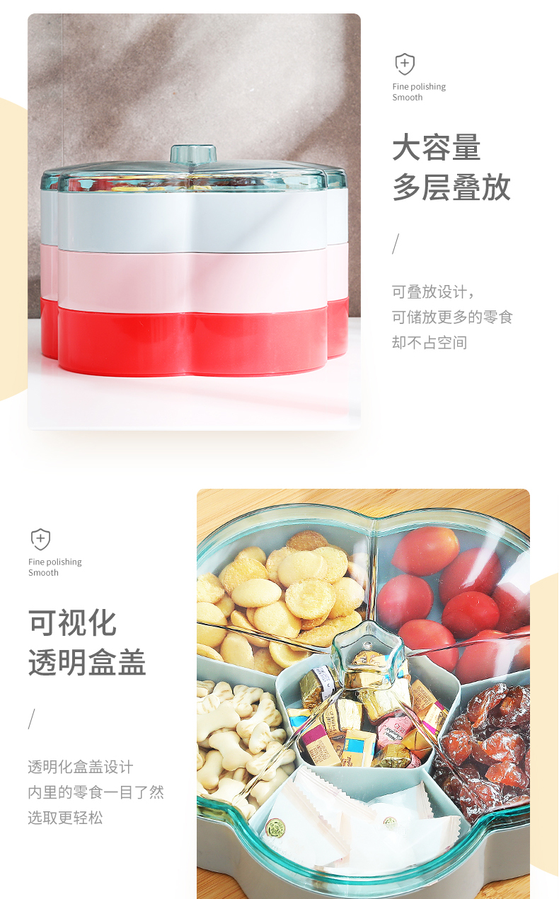 加厚环保材质,质量特硬级,分格收纳,糖果,瓜子,果干一一收纳,整洁方便!小伙伴来家做客倍儿有面!赶紧撸回家喽!