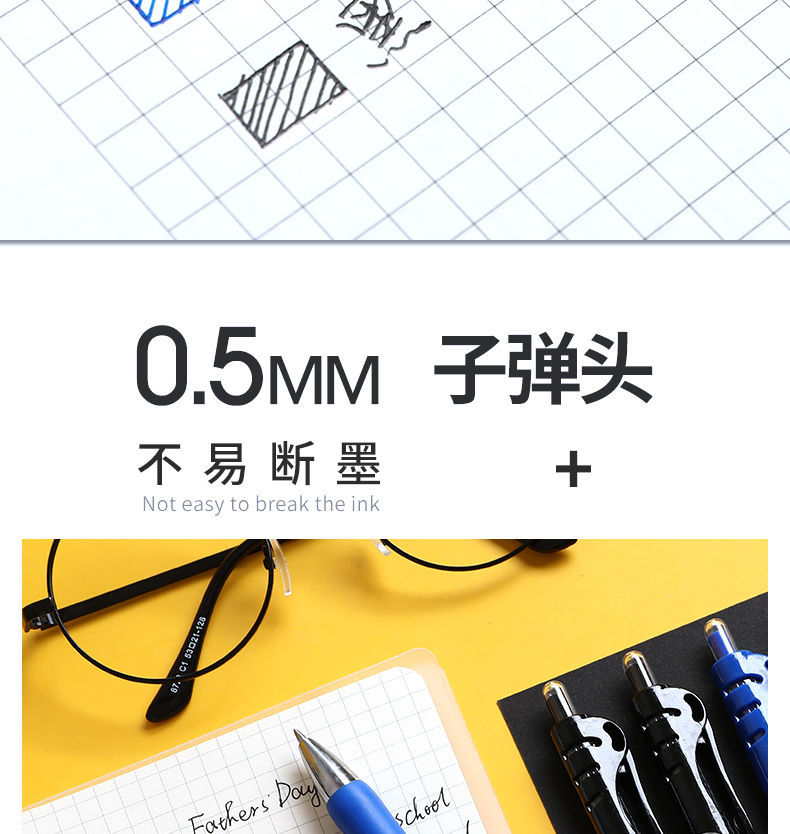【千奕】按动中性笔3支+20支笔芯