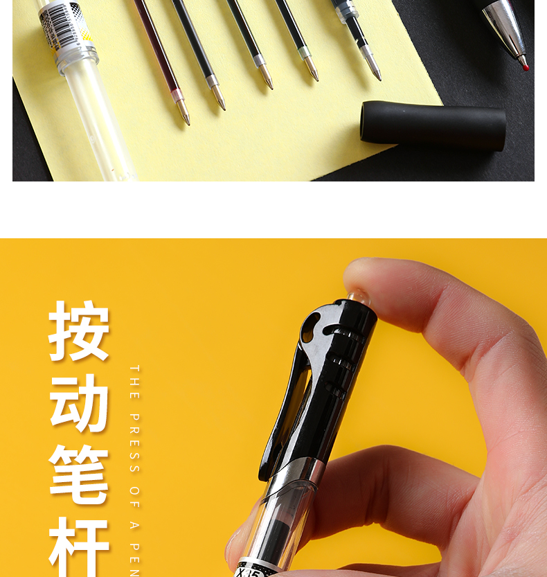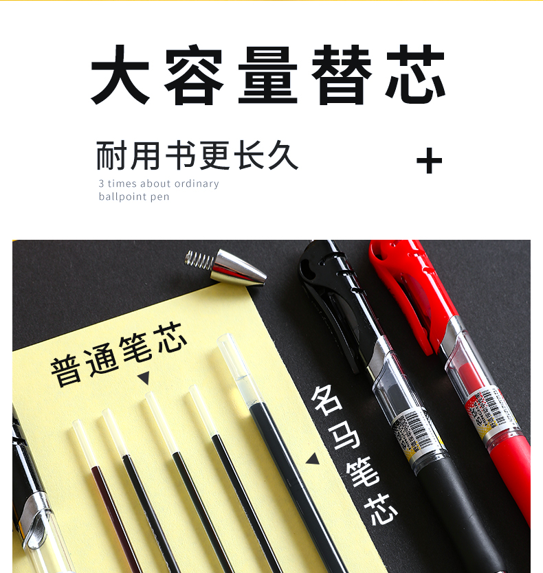 【超值3支笔+20支笔芯~】学生用0.5按压式水性笔笔芯考试碳素笔,医生处方用笔子弹头学习文具用品批发,大容量笔芯,按动结构设计,腊头保护~