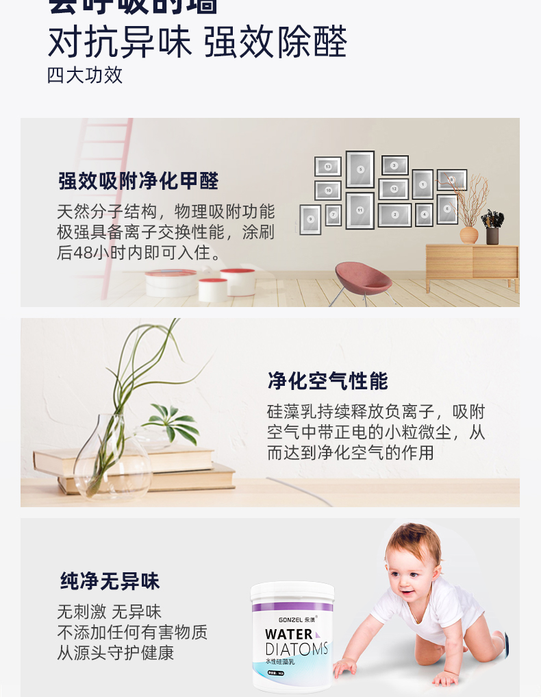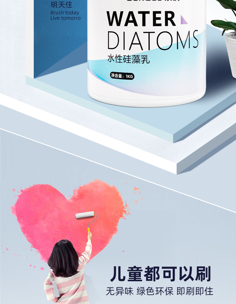 上海市建筑科学研究院【已检验】,环保硅藻水性乳胶漆,易施工,不脱落,净化甲醛内墙翻新,通过国家安全认证,色彩多样,新老房子都可用,超过1L装顺丰包邮!!【赠运费险】