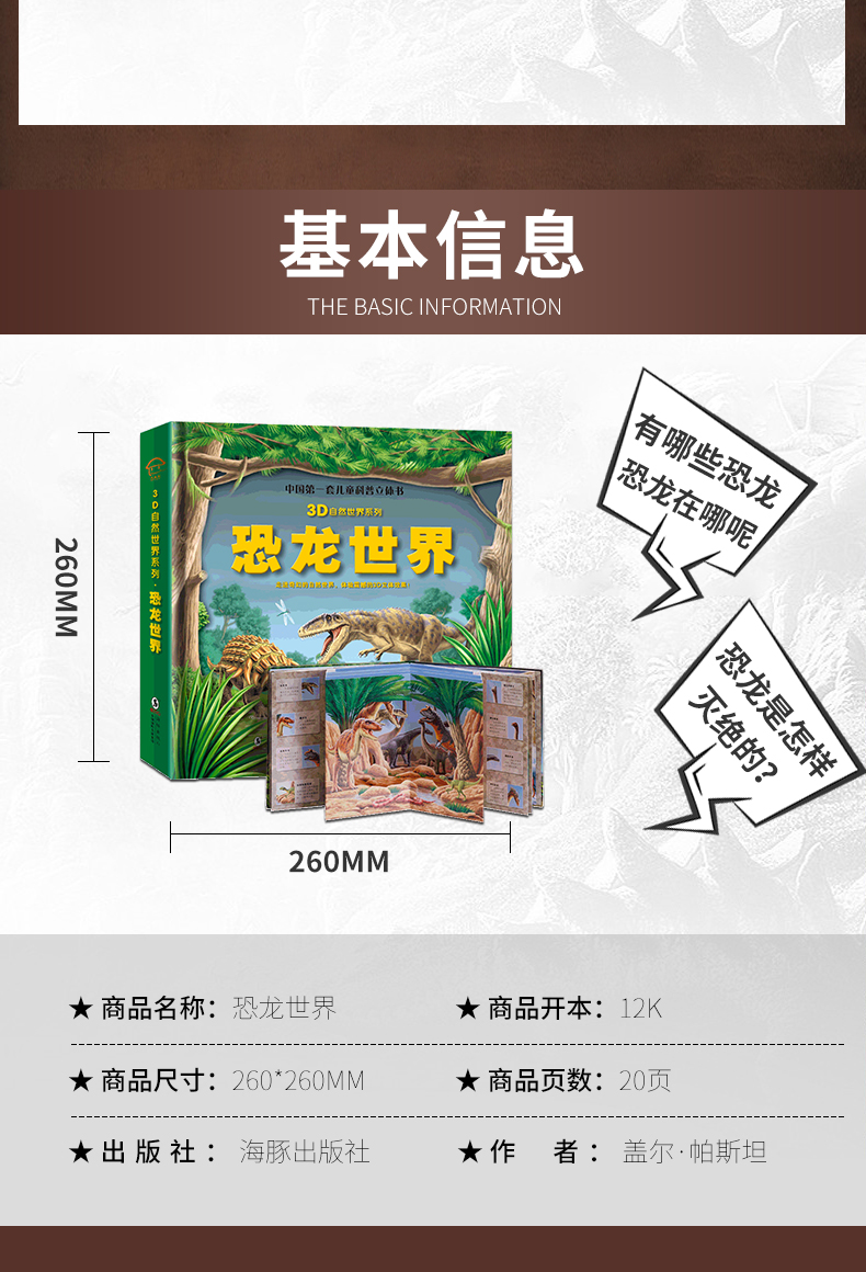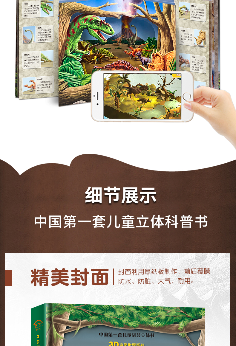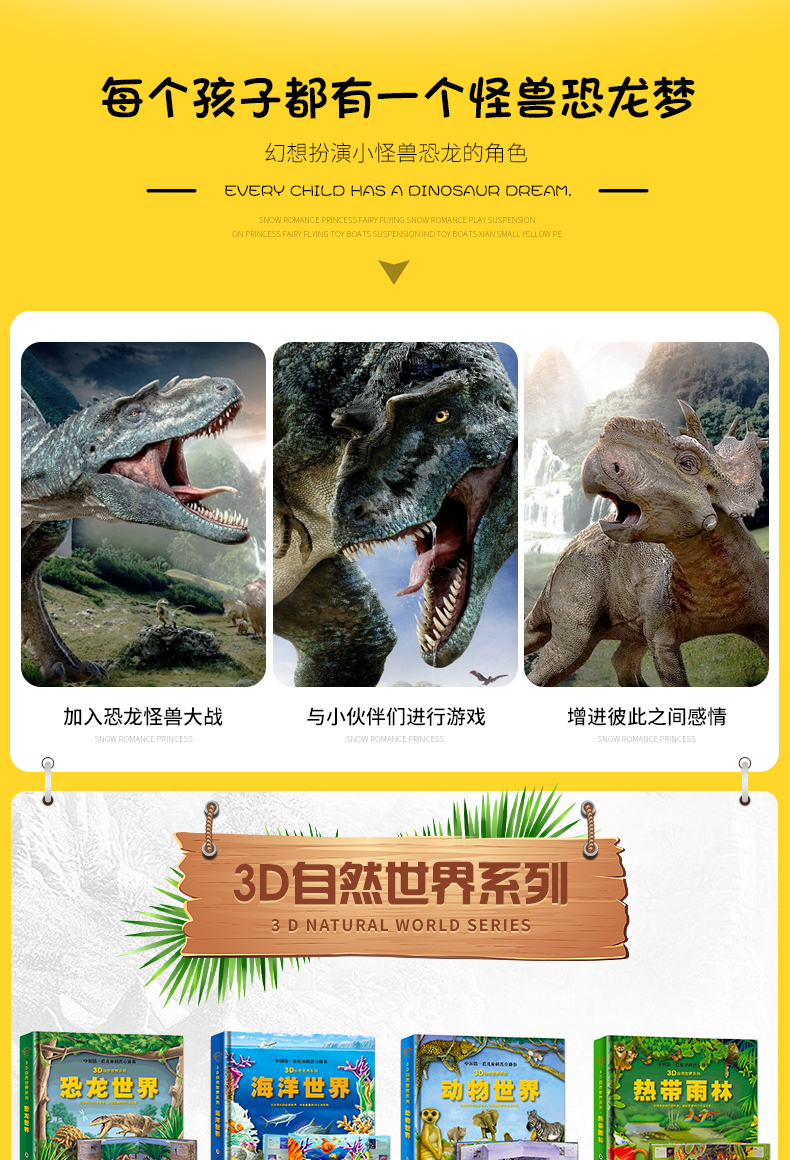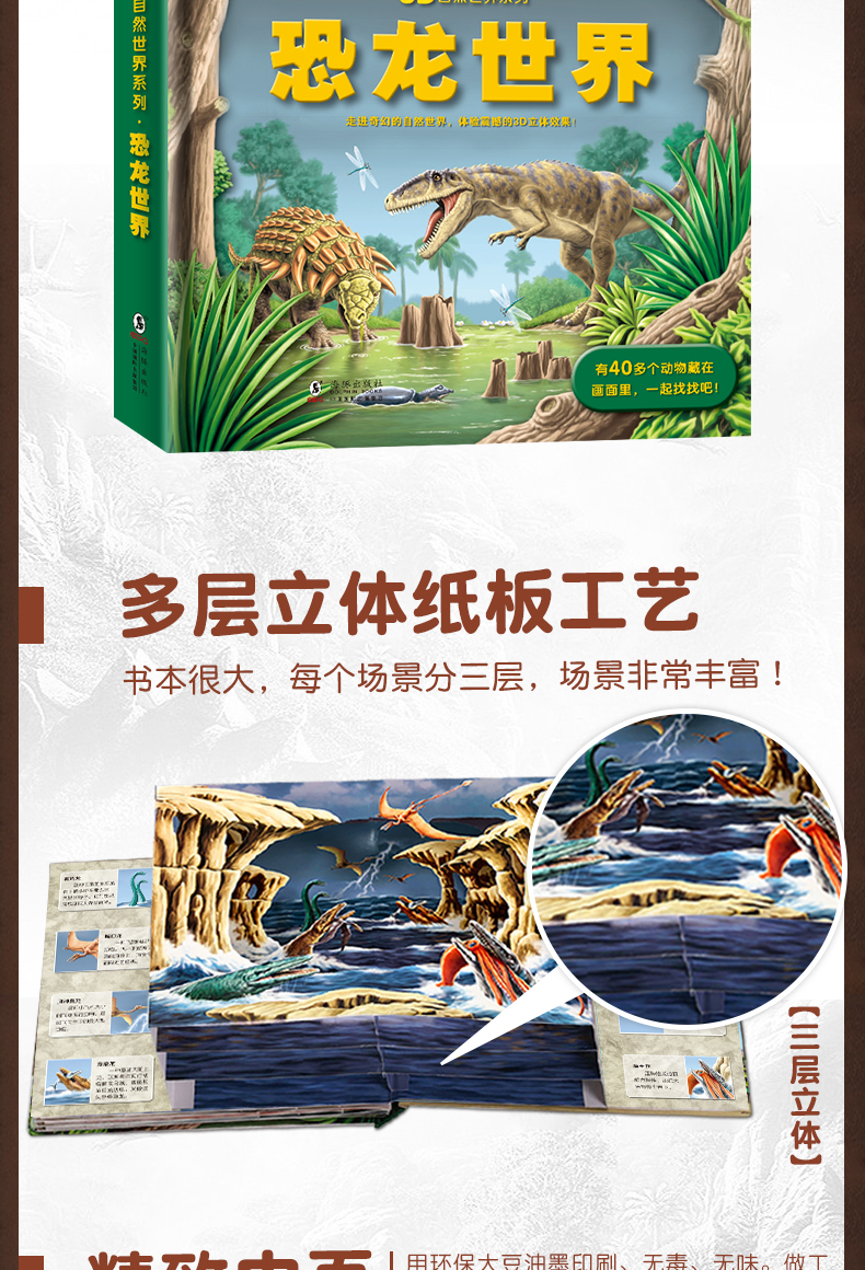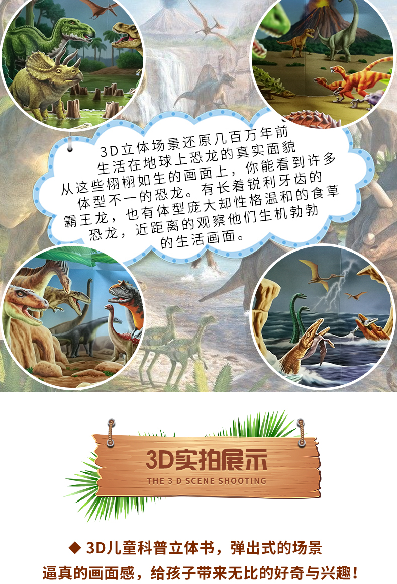 抖音爆款,带领孩子开启奇妙恐龙王国之旅的书,培养耐心和观察力专注力,采用3D高清全景图片,大字彩图注音,封面精美,颜色亮丽,让孩子更形象的认知恐龙。
