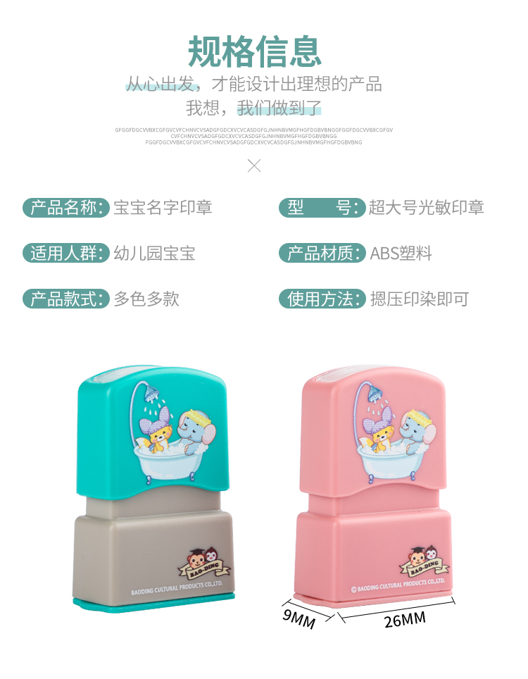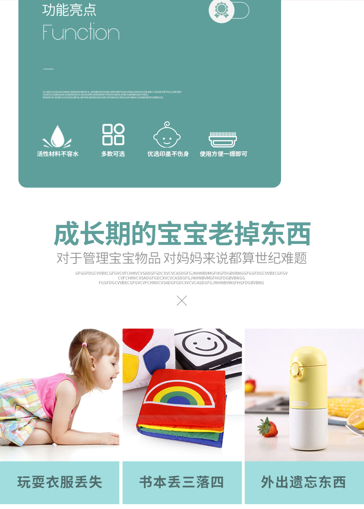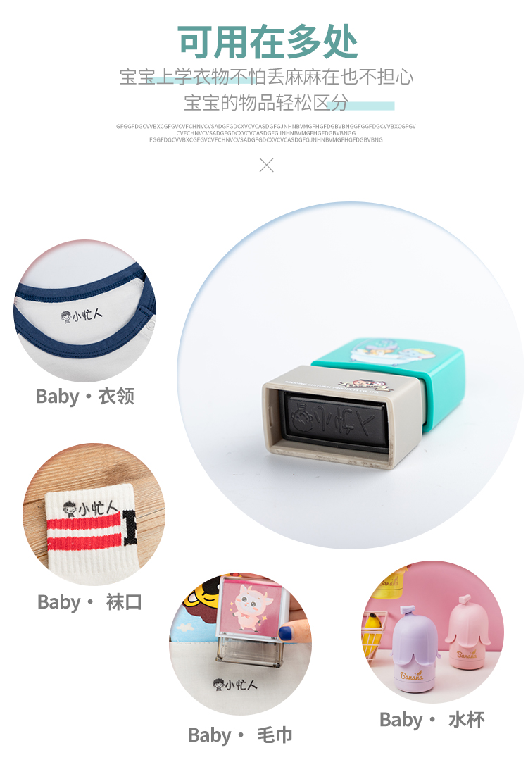 你还在一个一个去手缝名字吗,你还在为宝宝的物品无法区分而烦恼吗?只需这款印章就够了,防水洗,不褪色,字迹特别清晰,还有私人专属设计喔,安全环保印油,还送印字带,密封盒,速速抢购!