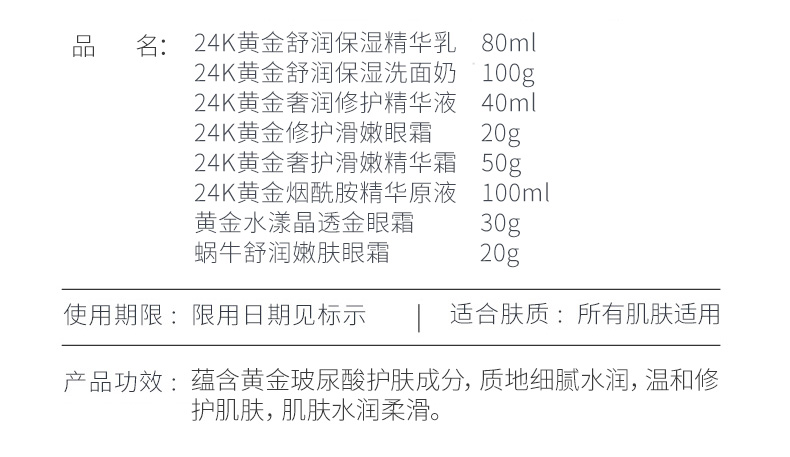 【任选3件仅39元!】24K黄金补水保湿套装精华液,小安瓶,冻干粉,面膜,眼膜,爽肤水,面霜等等25款护肤产品,改善暗沉肌肤,清洁、补水、控油,一套解决!
