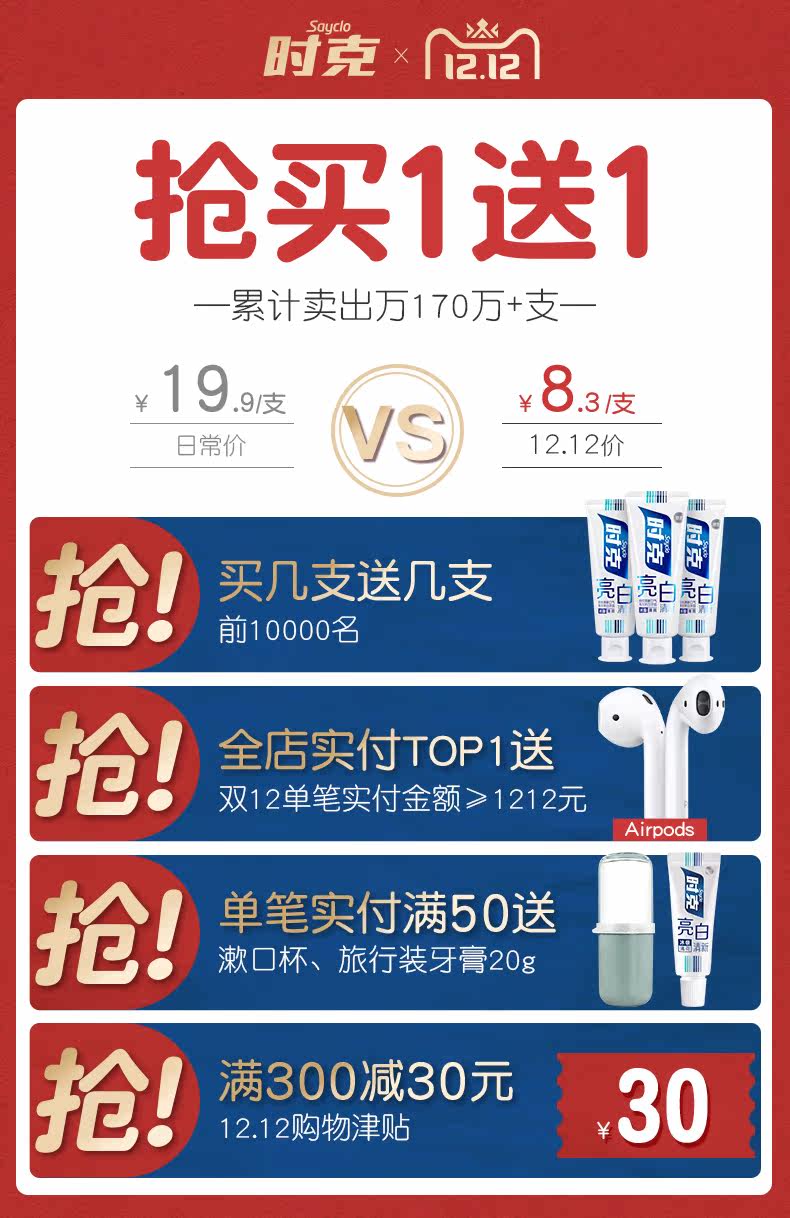 【赵丽颖代言】时克美白牙膏2支