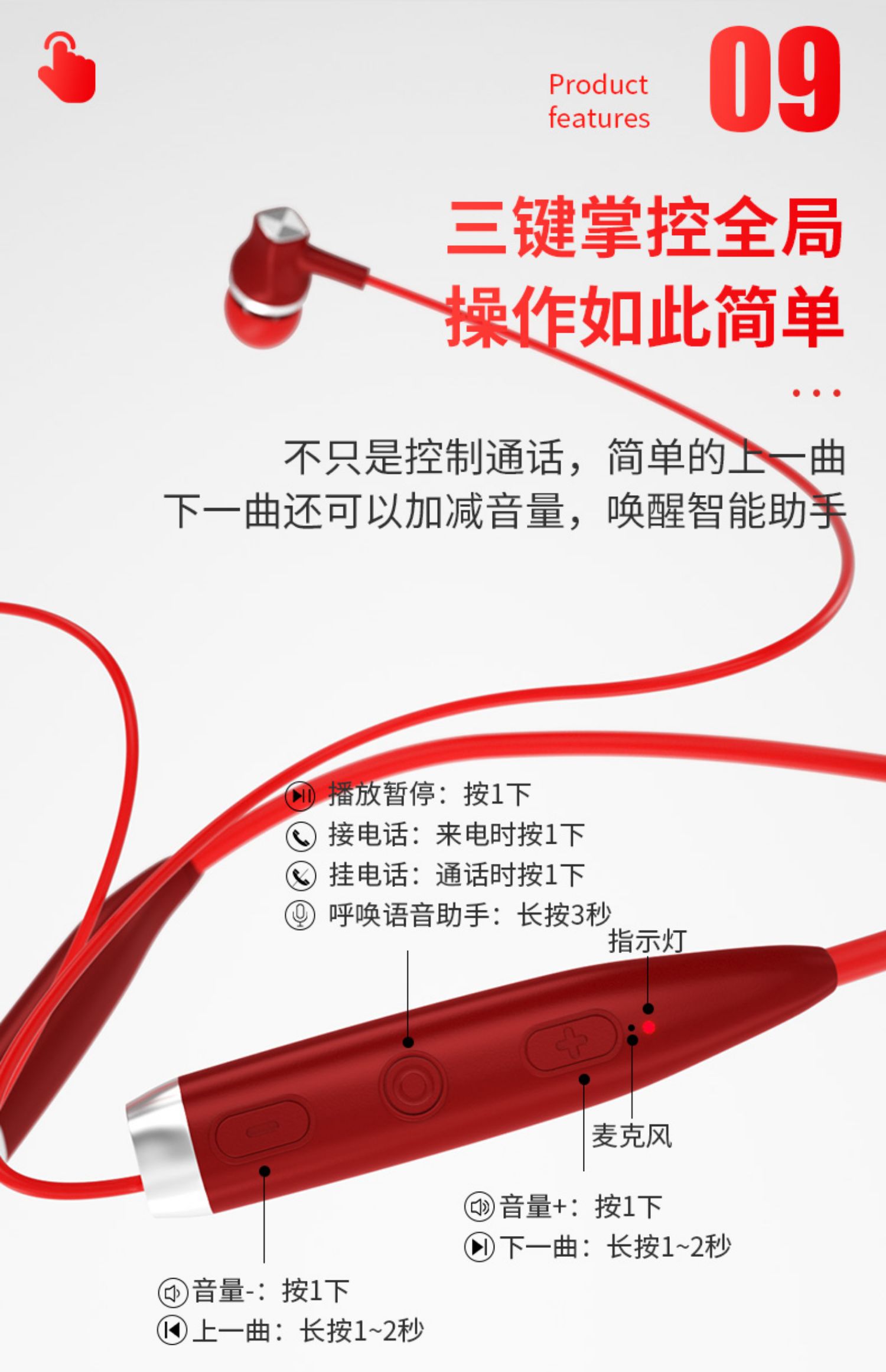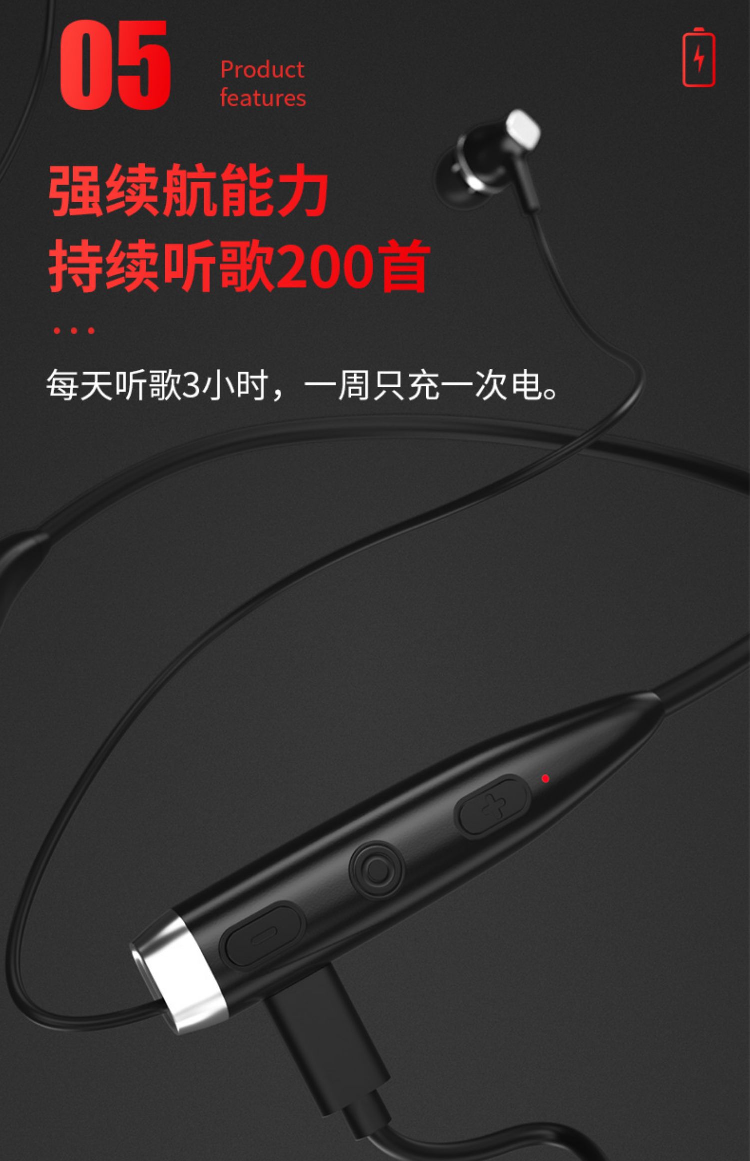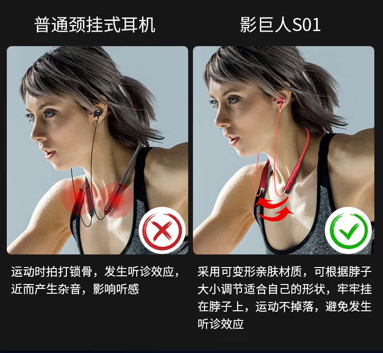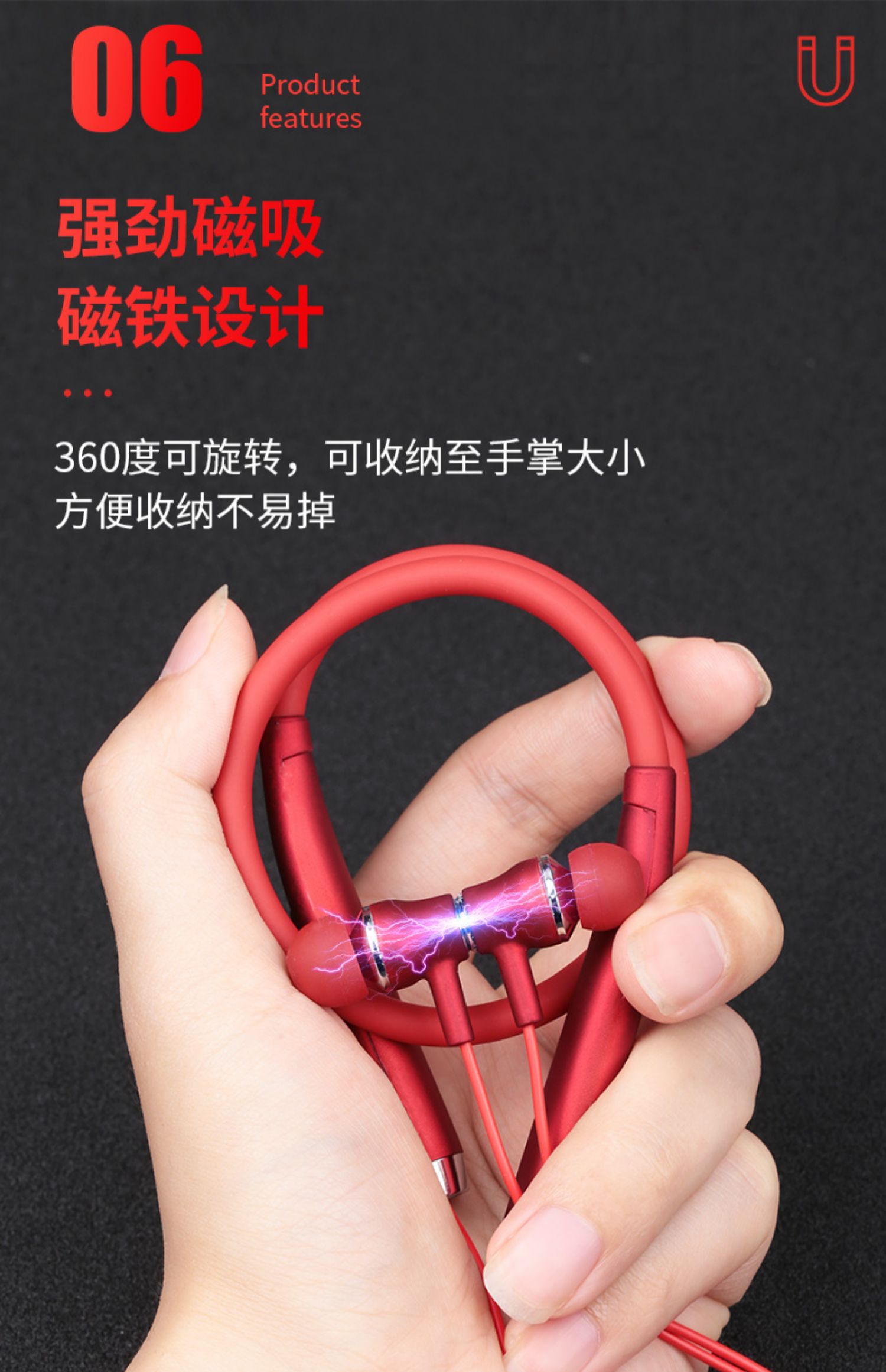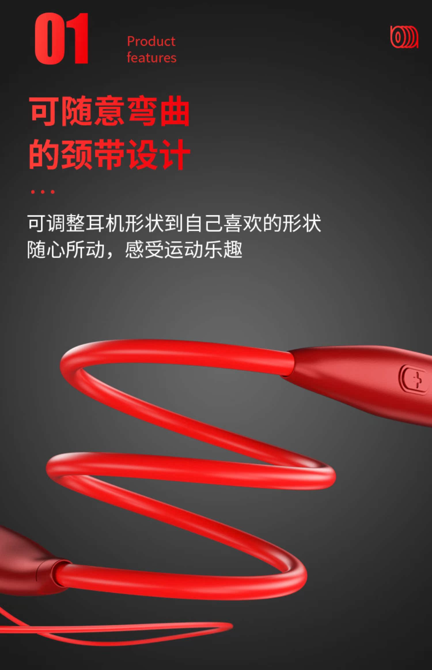 合双震膜,蓝牙5.0二代,双耳震撼音效!挂脖式狂甩不掉,强劲低音效果,可任意弯曲项圈,防水防汗,运动跑步达人必备!