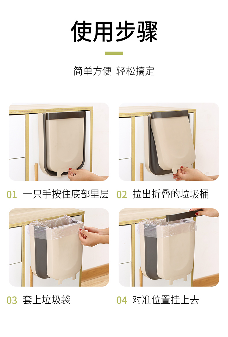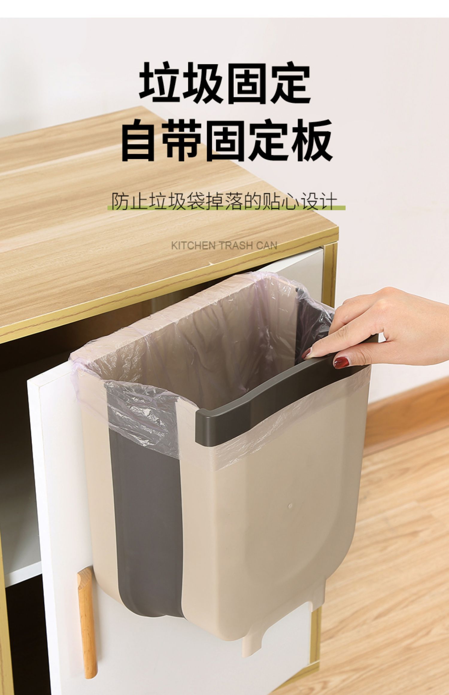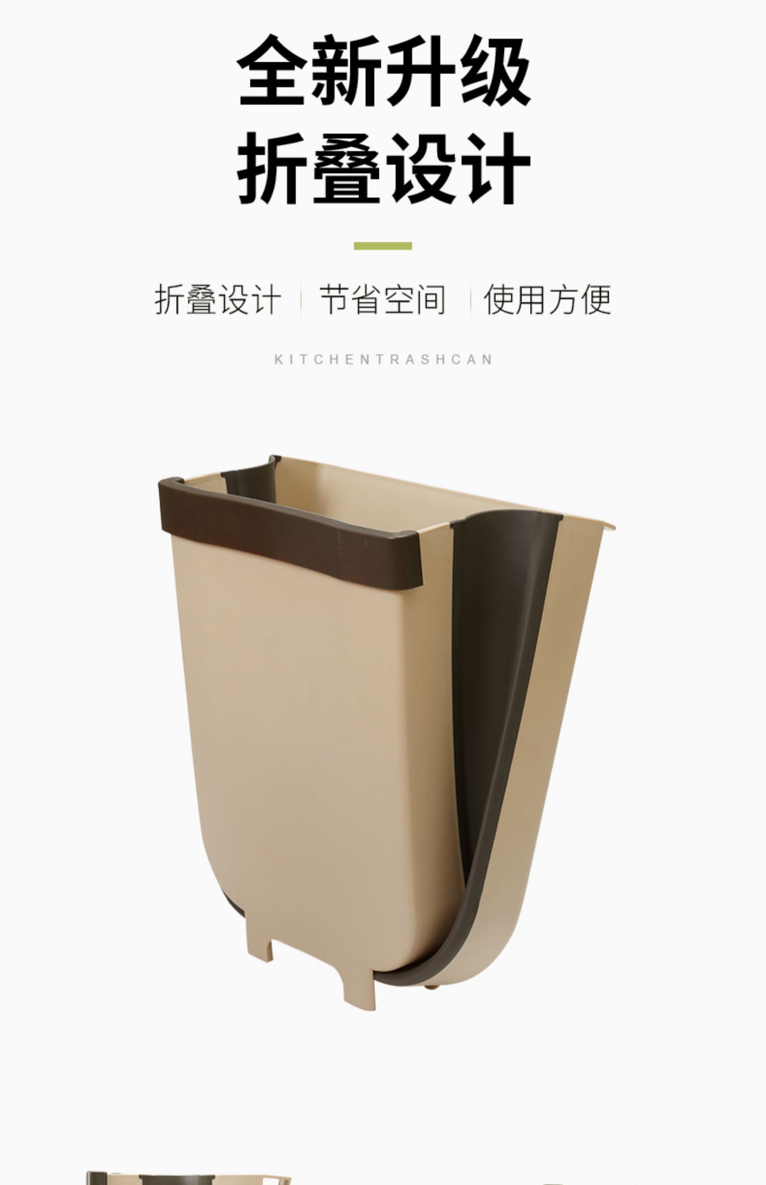 【推荐理由】:不用你弯腰的垃圾桶,全新概念折叠设计,不占空间,节省空间,使用方便,垃圾桶自带固定板,厨房,办公室,客厅,卧室随处可挂。