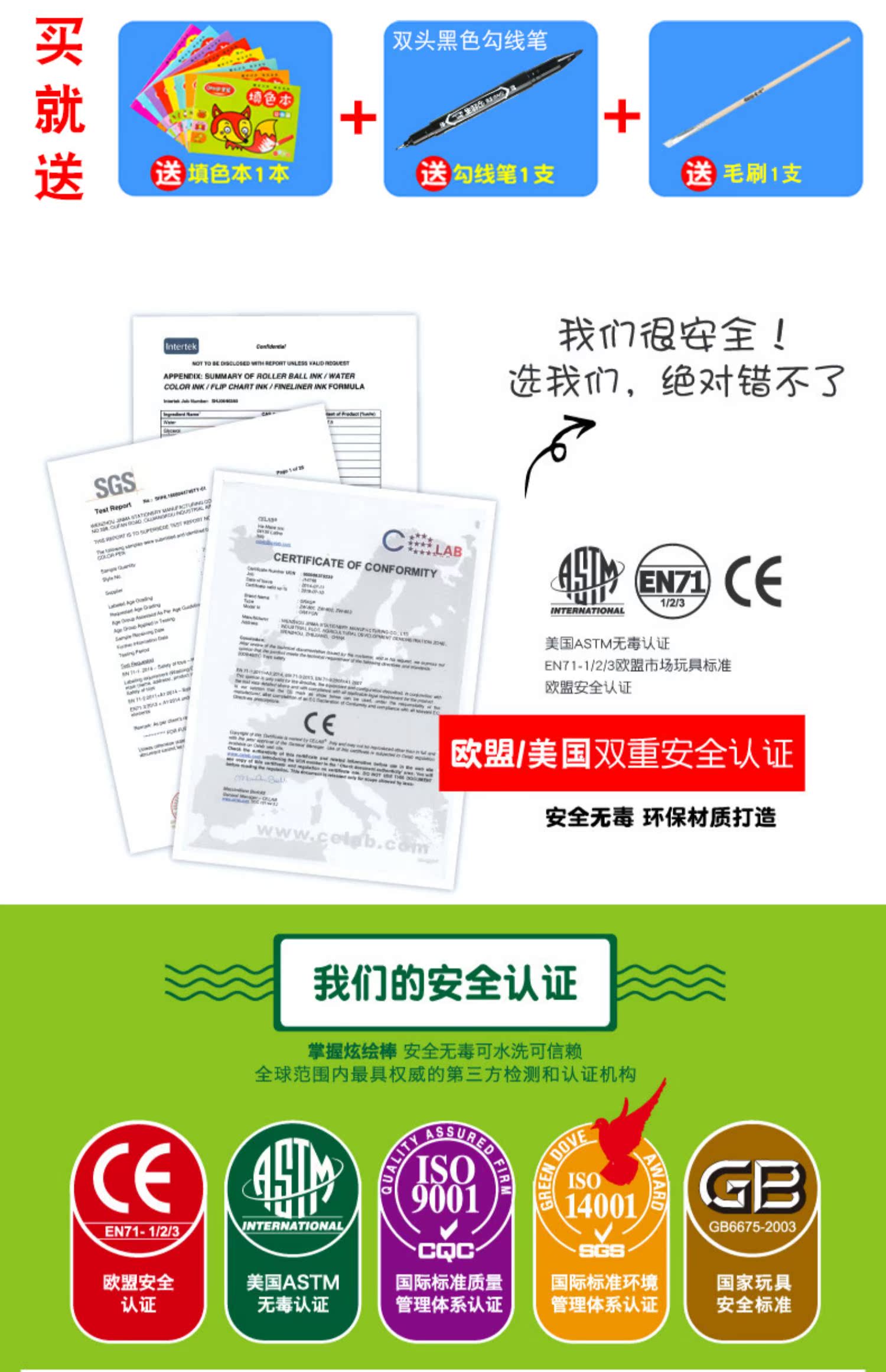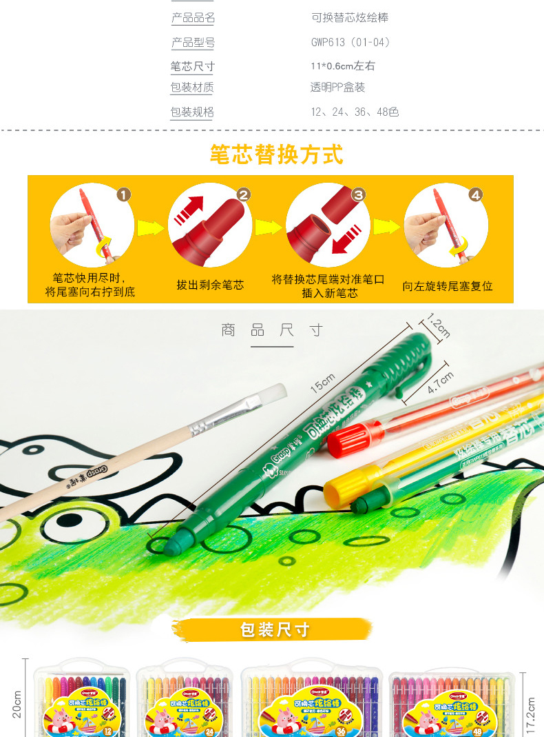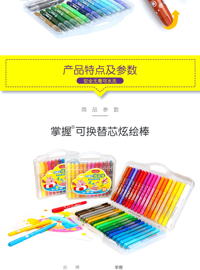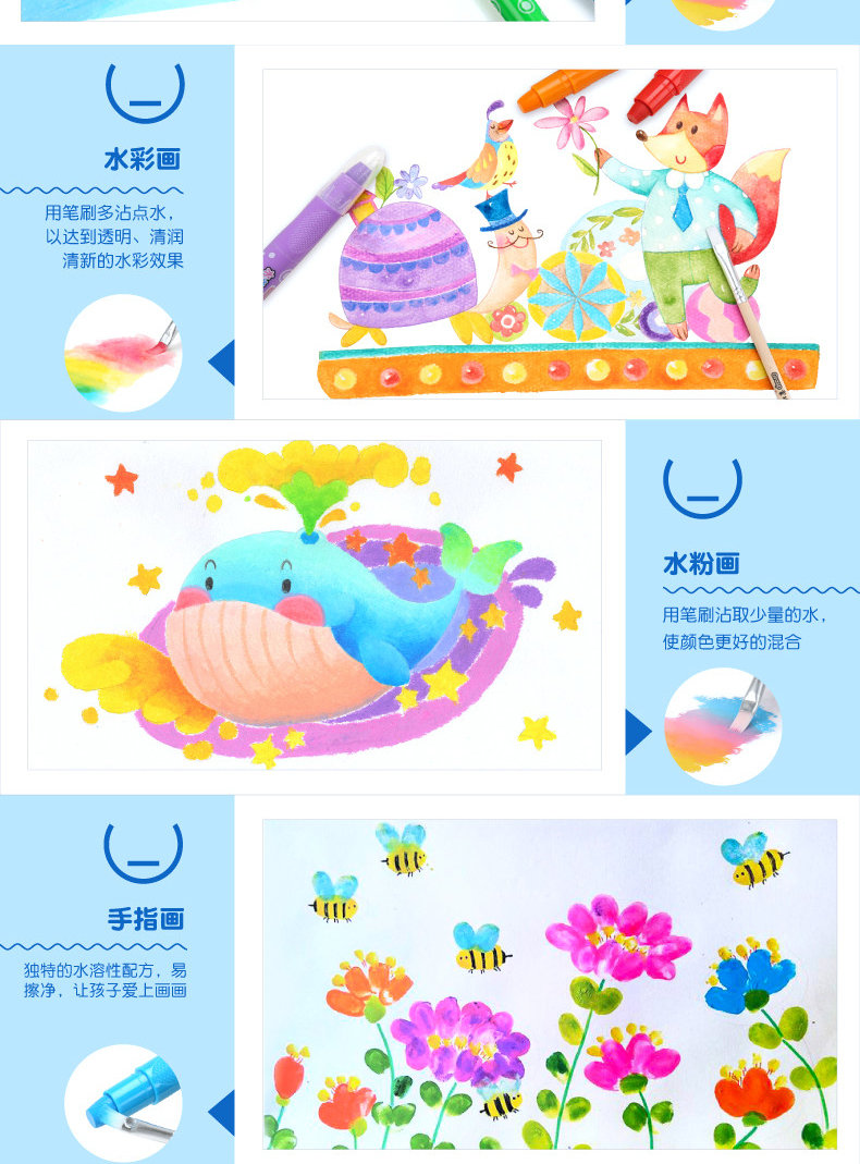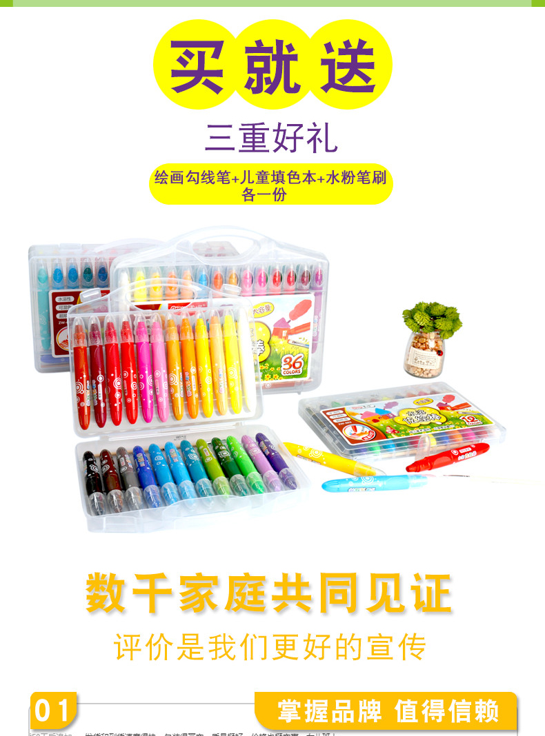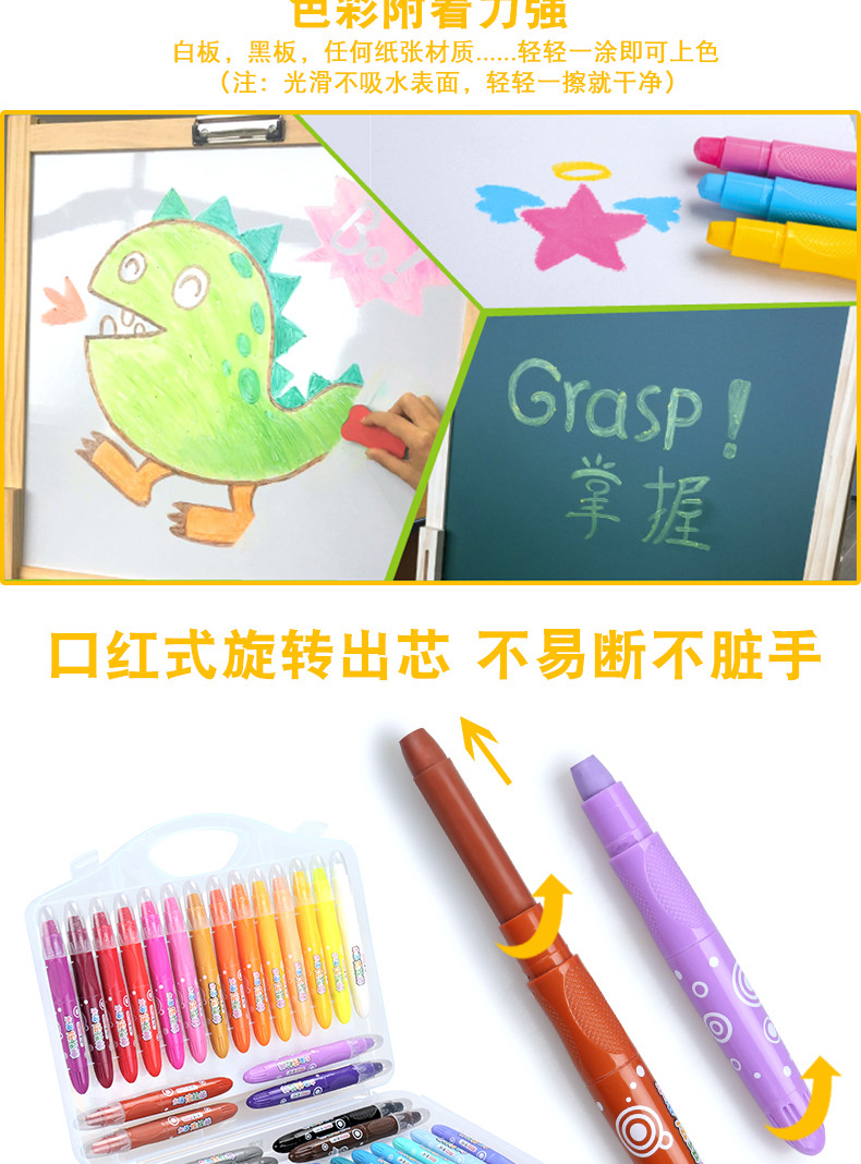 【赠送大填色本,勾线笔,毛刷】不脏手,旋转笔身设计,笔触细腻,丝滑流畅,上色效果均匀,色彩附着力强,适合孩子涂鸦以及精细作画,让孩子轻松GET绘画技巧。