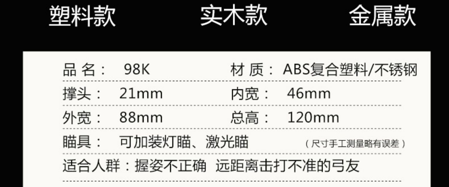 升级树脂98K弹弓,防滑不络手,提高稳定性,内置压片秒上皮筋,手指哪打哪。儿时记忆,童年回忆,一把弓一辈子。PS:小伙伴们请勿拉弓对人哦!【赠运费险+送视频教程】